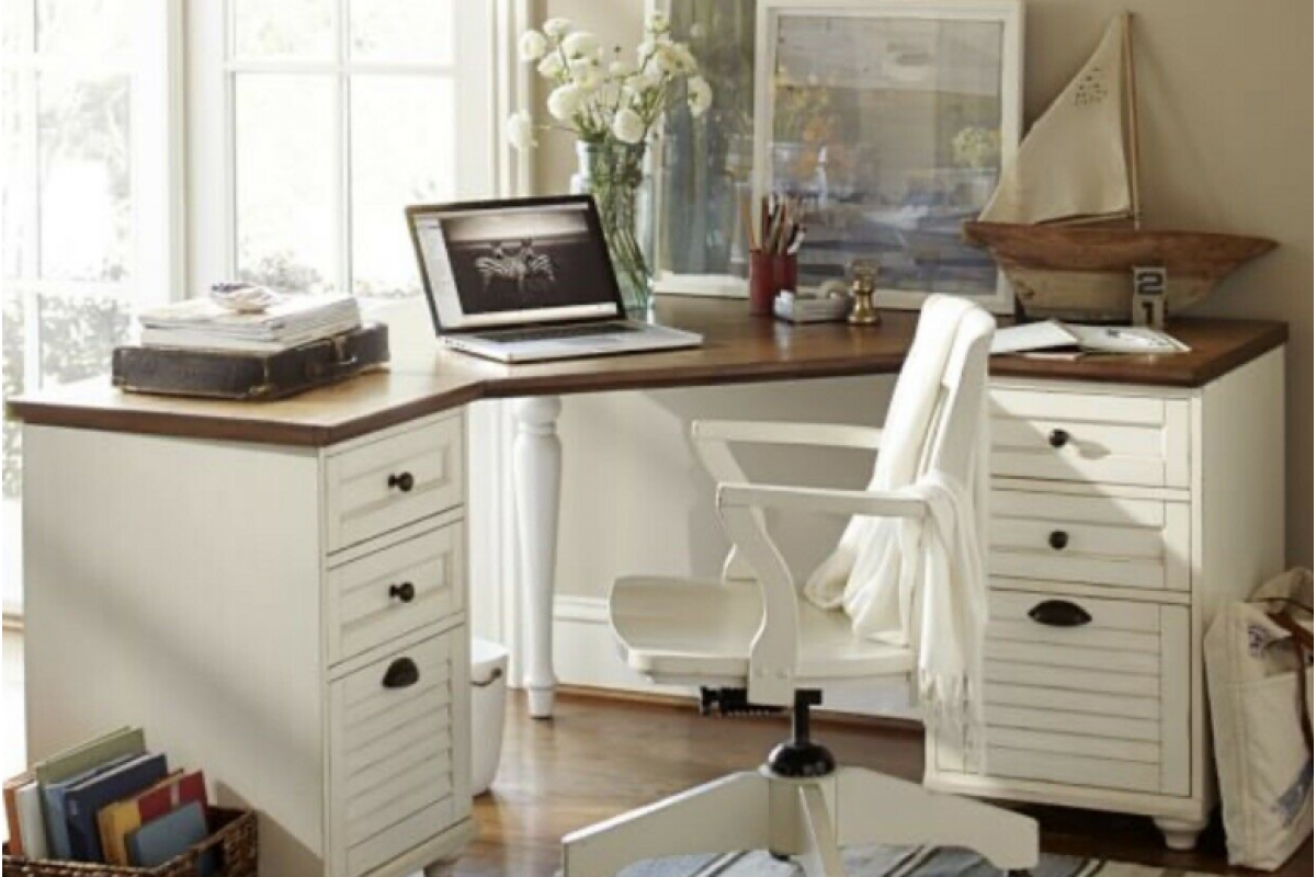 Угловой письменный стол в интерьере