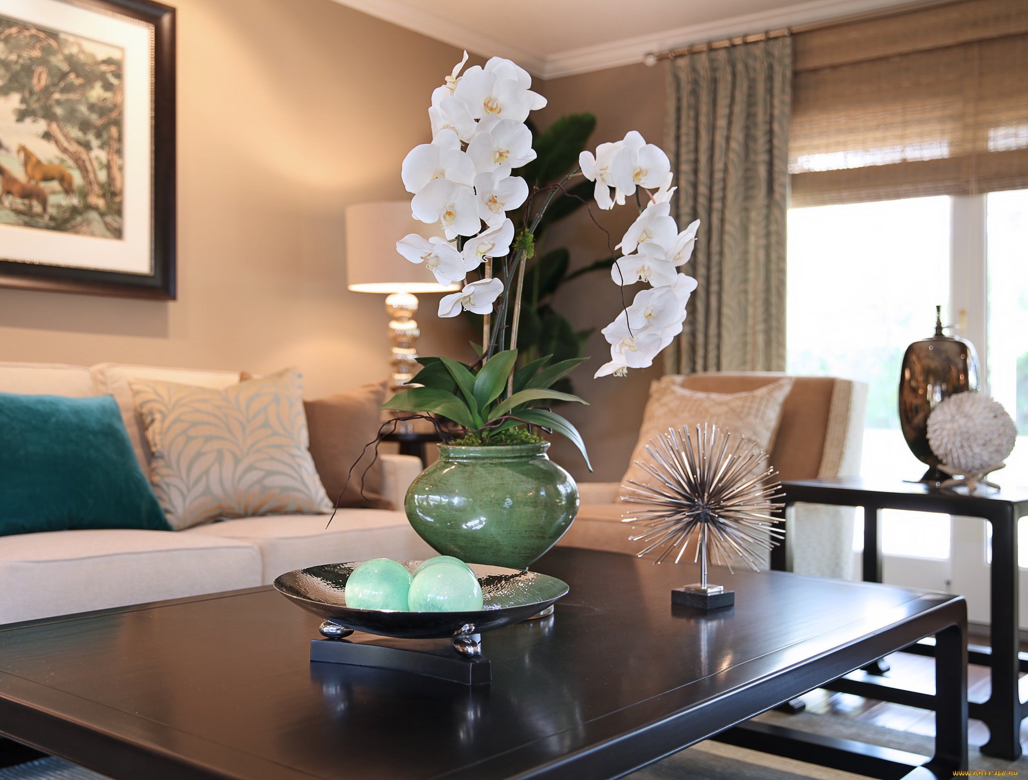 Орхидеи фаленопсис в интерьере гостиной