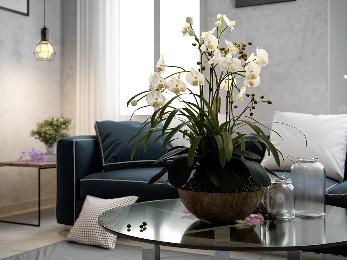 Искусственные цветы в интерьере гостиной