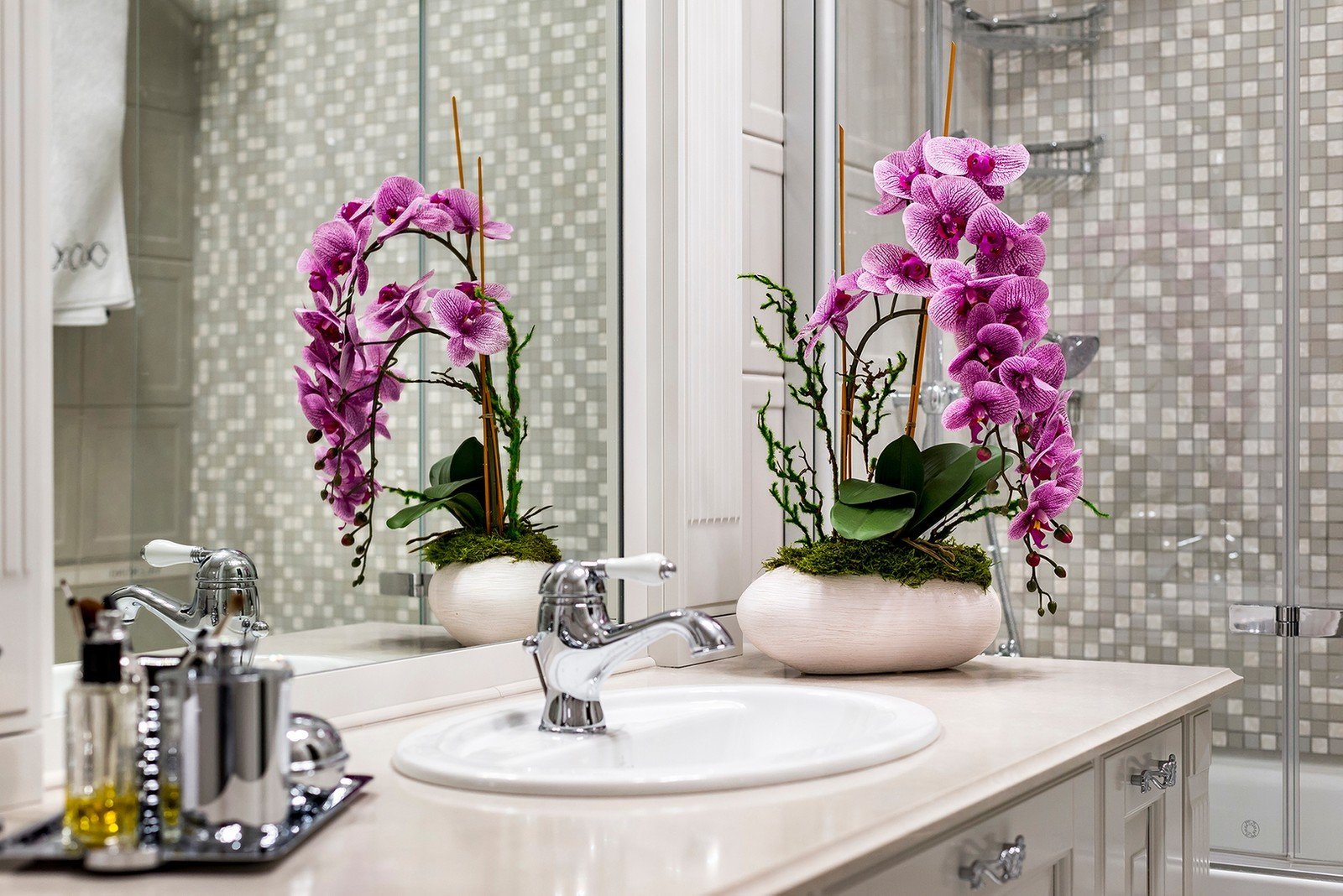 Искусственные цветы в интерьере ванной