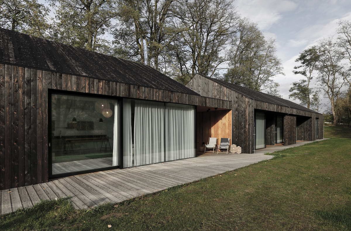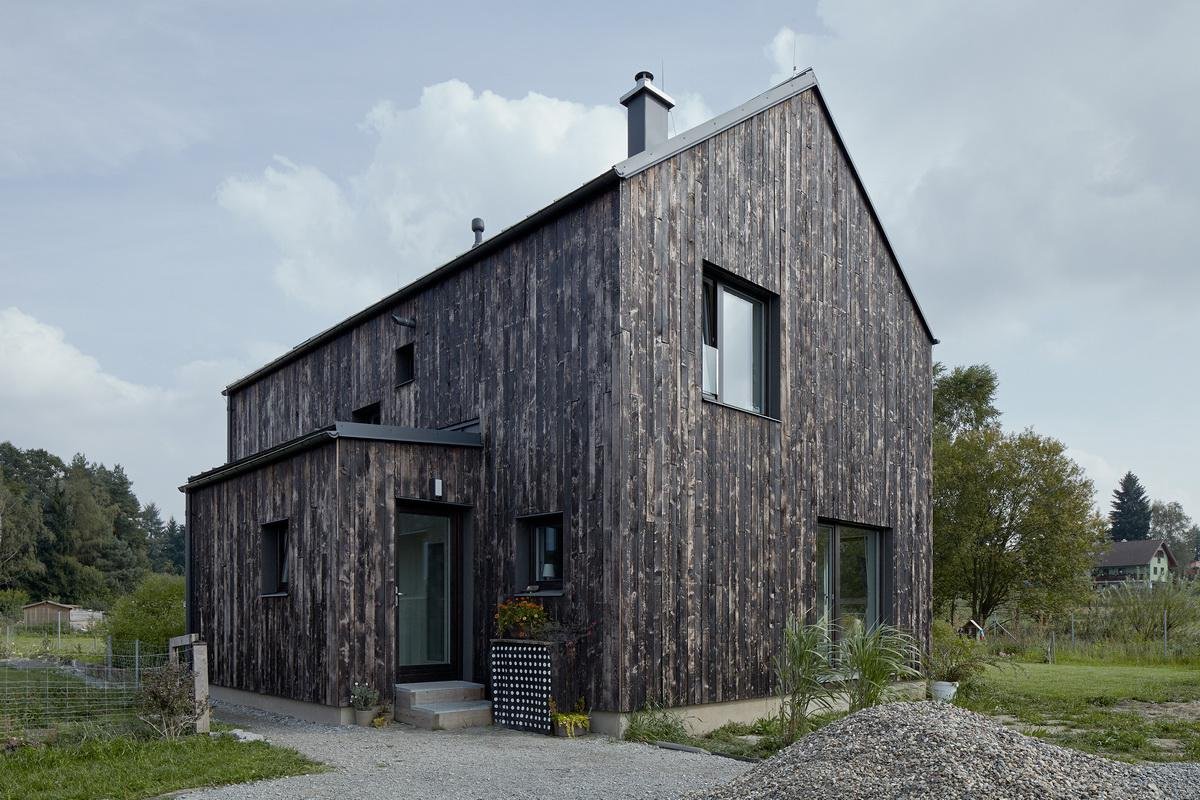 Дом отделан обожженной доской