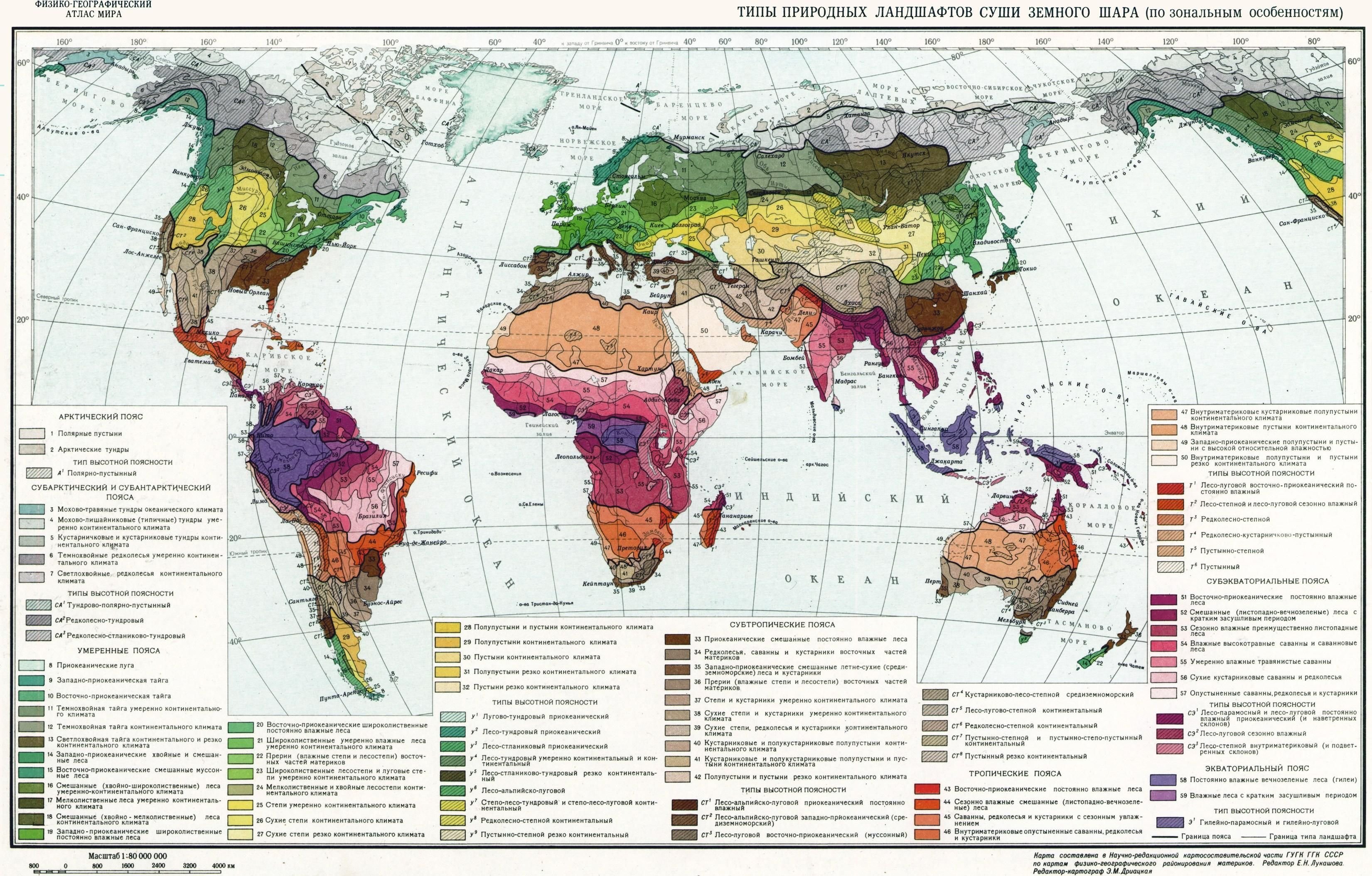 Типы природных ландшафтов суши земного шара карта