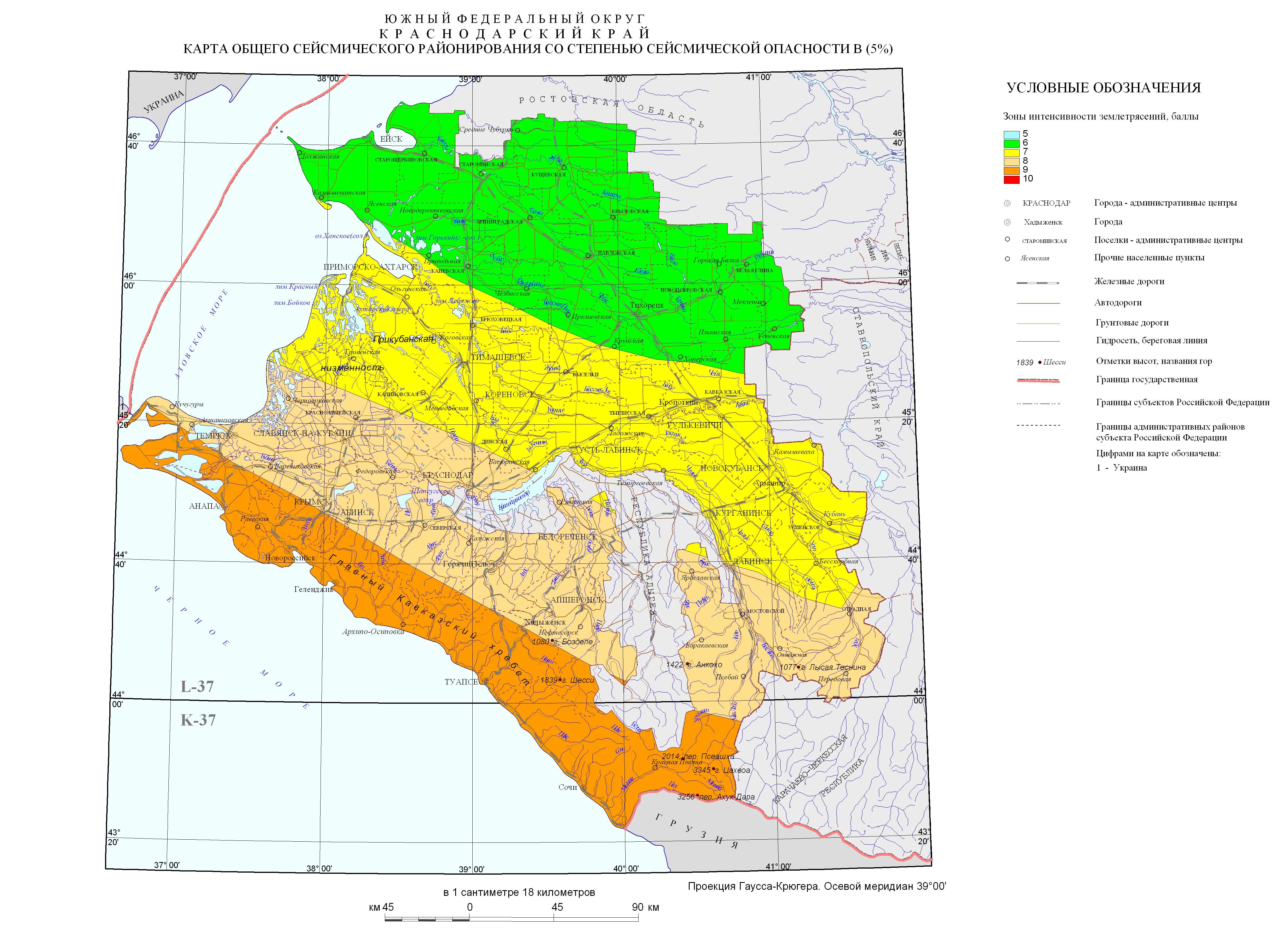 Карта общего сейсмического районирования Краснодарский край