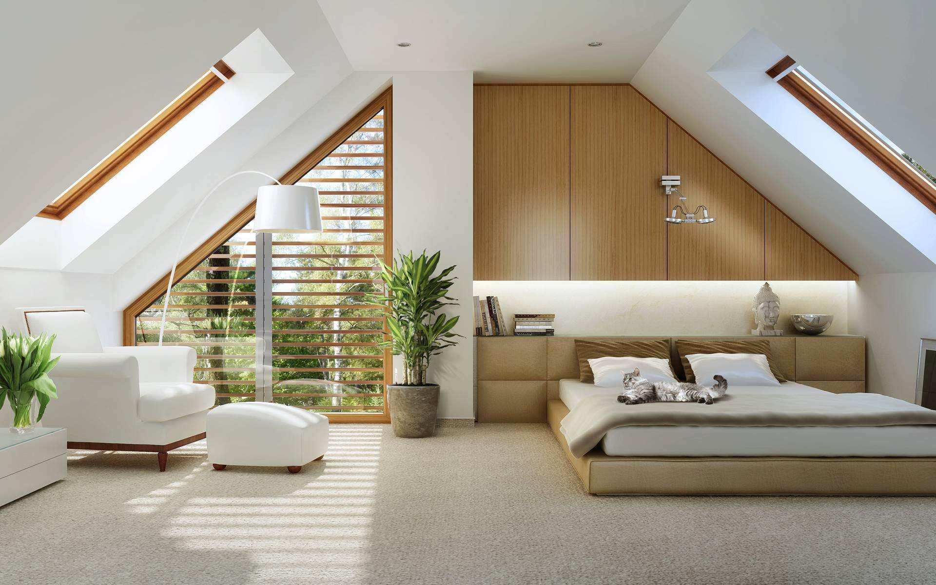 Спальня на мансарде в современном стиле