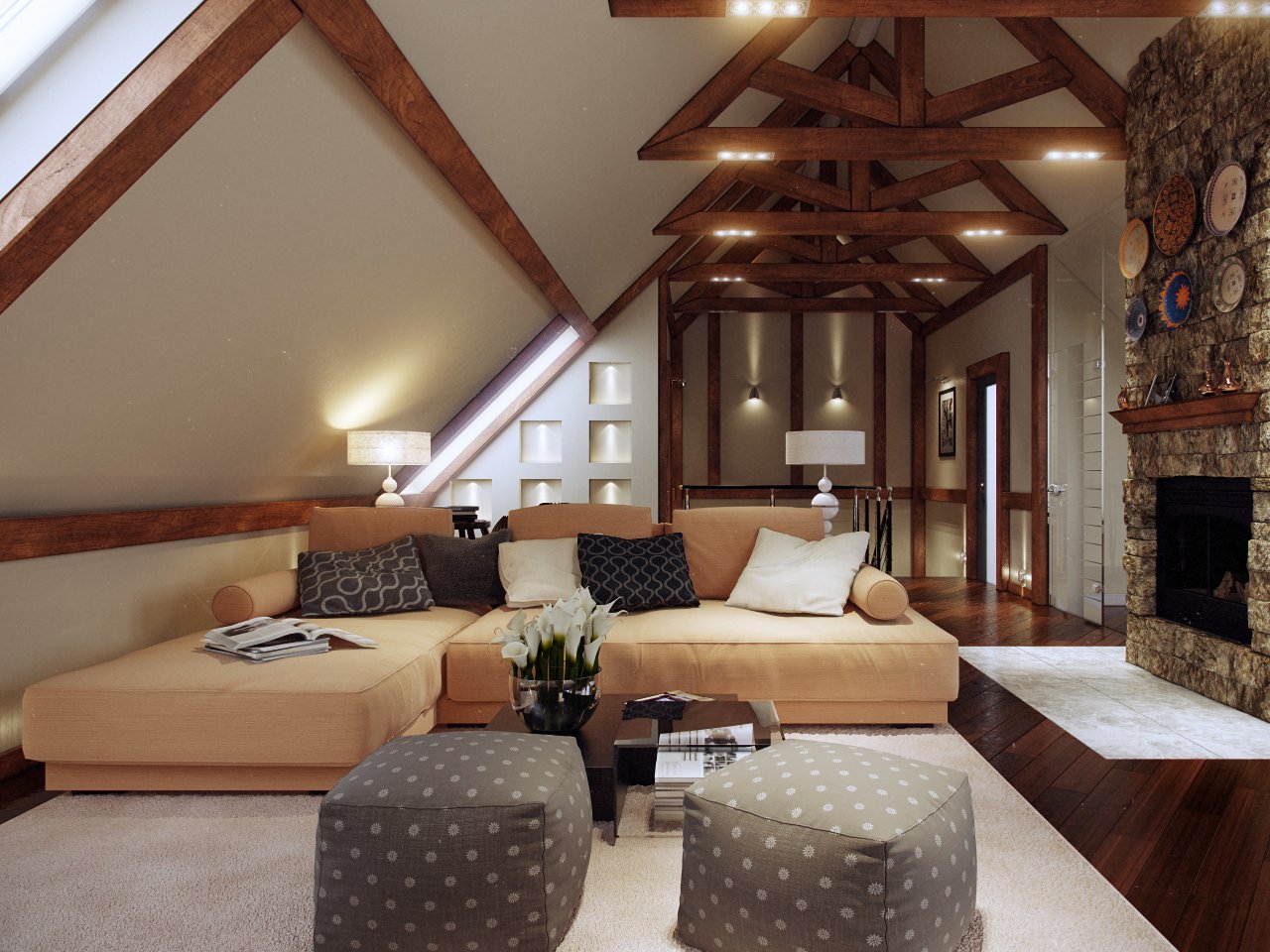 Мансарда под четырехскатной крышей интерьер