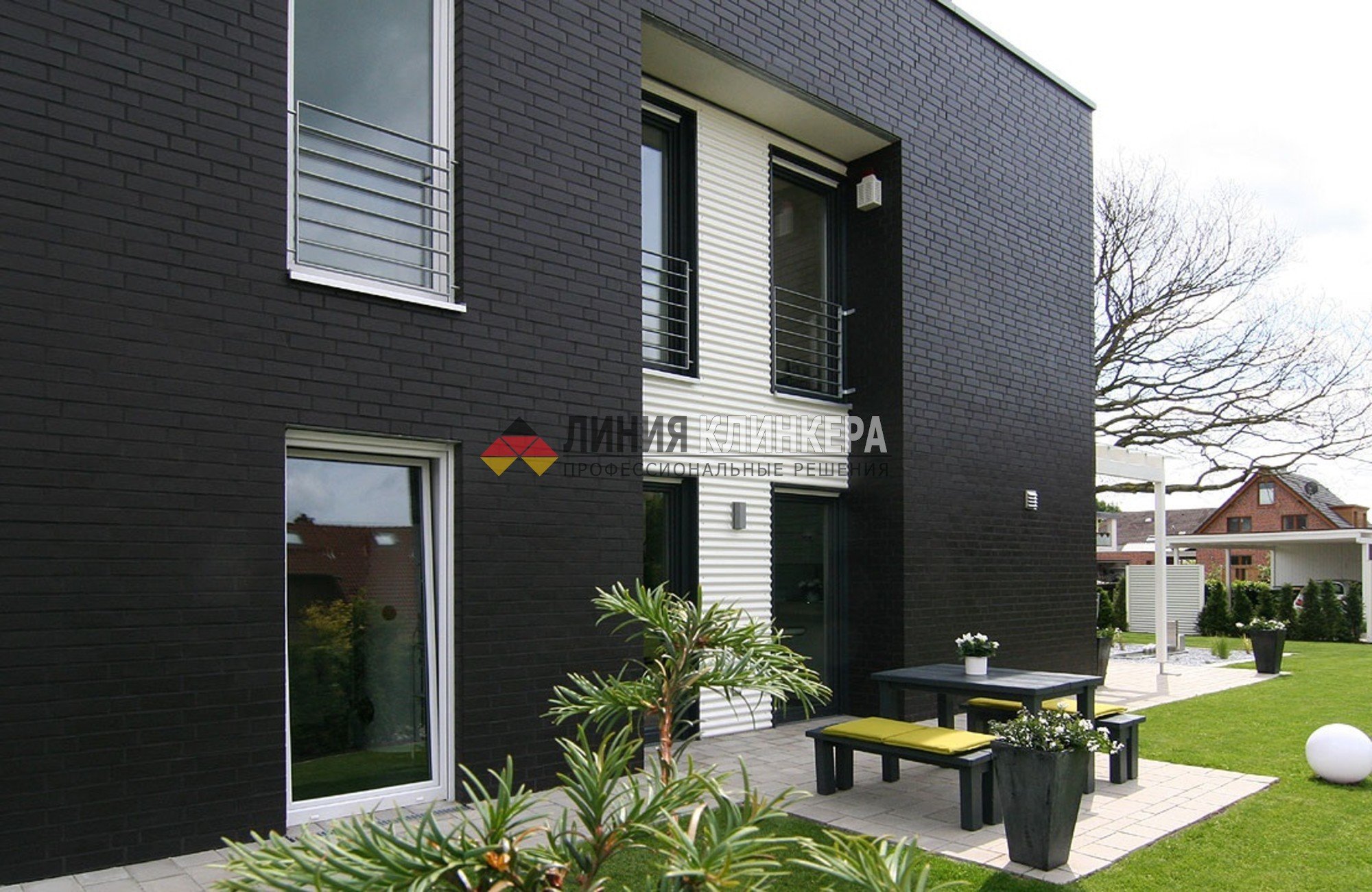 Фасад из серого кирпича