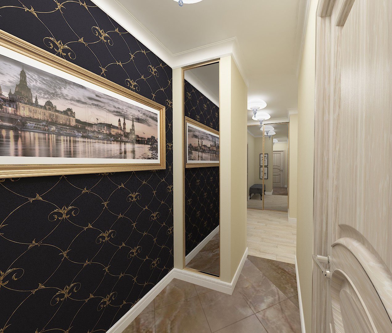 Обои в коридор под темные двери