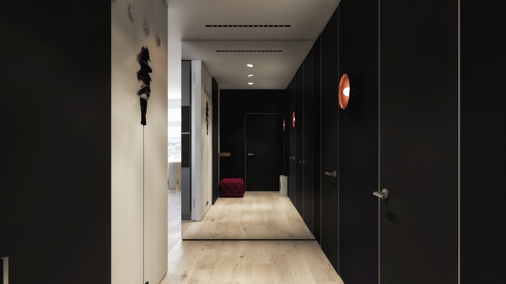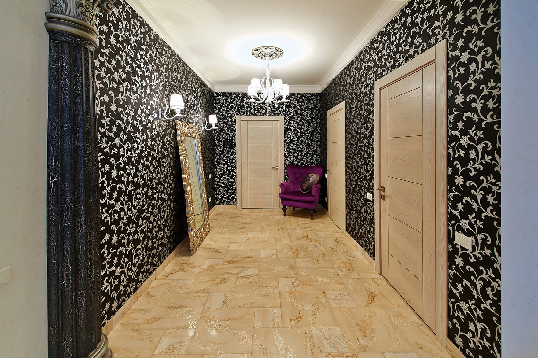Черные обои в коридоре