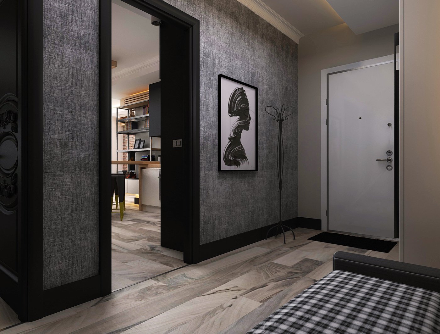 Черные обои в прихожей