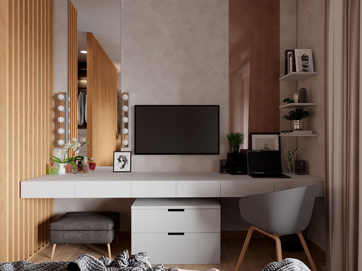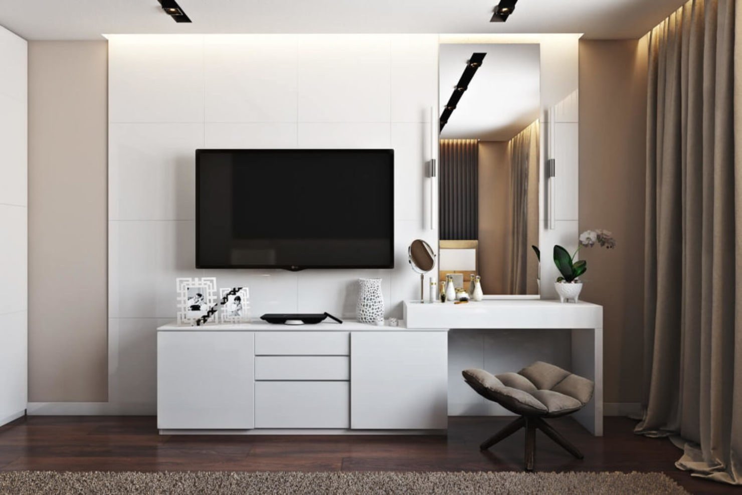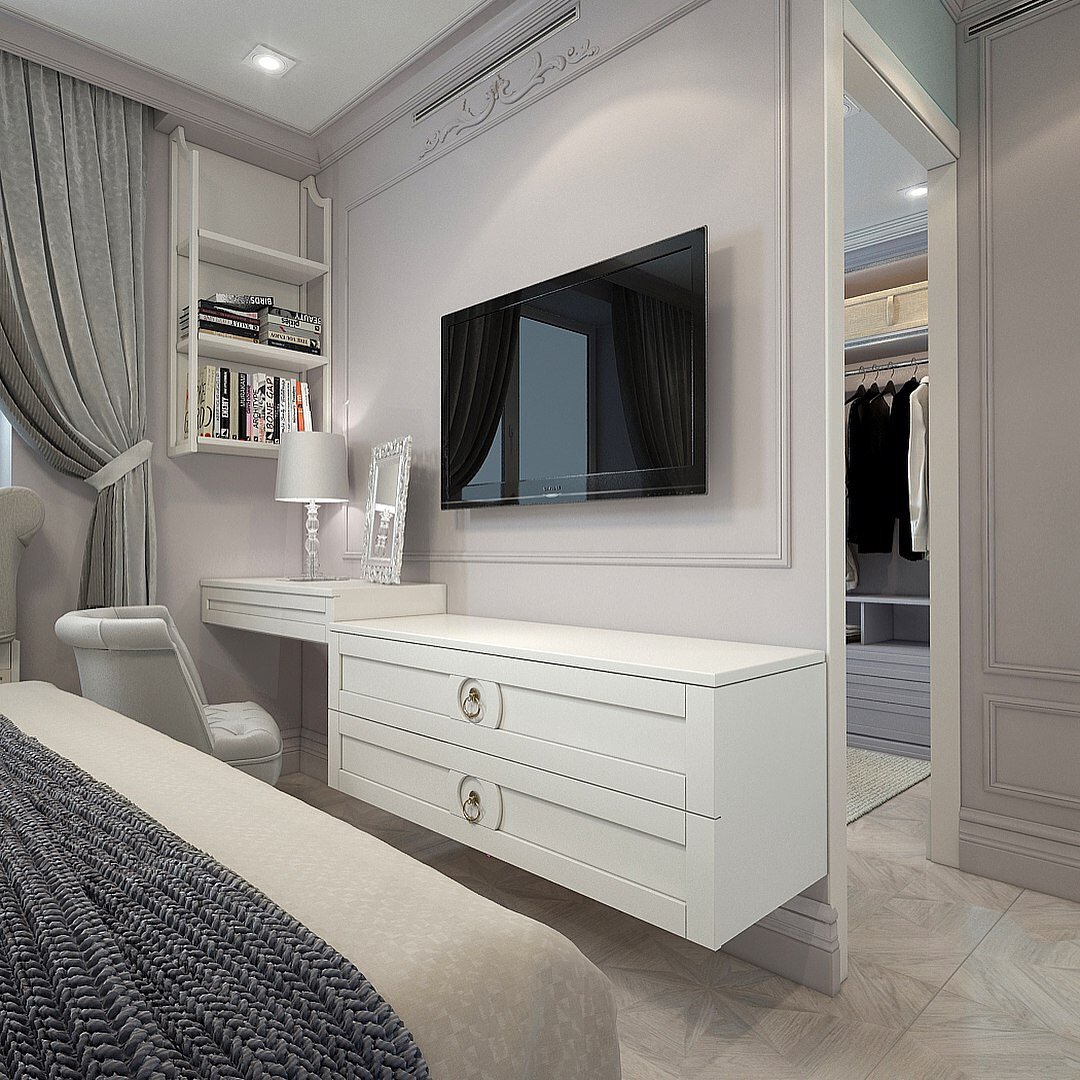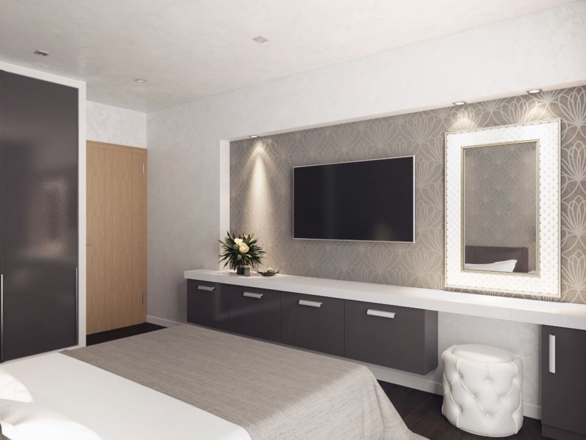 Спальня с телевизором и туалетным столиком