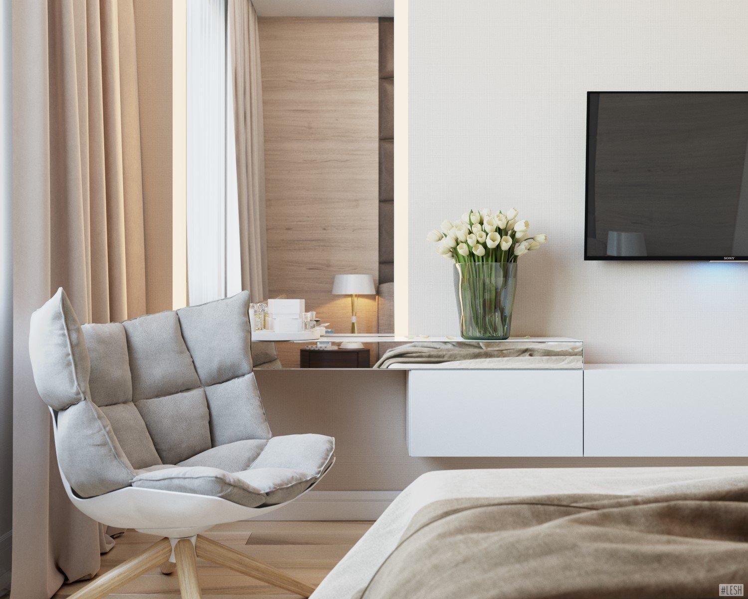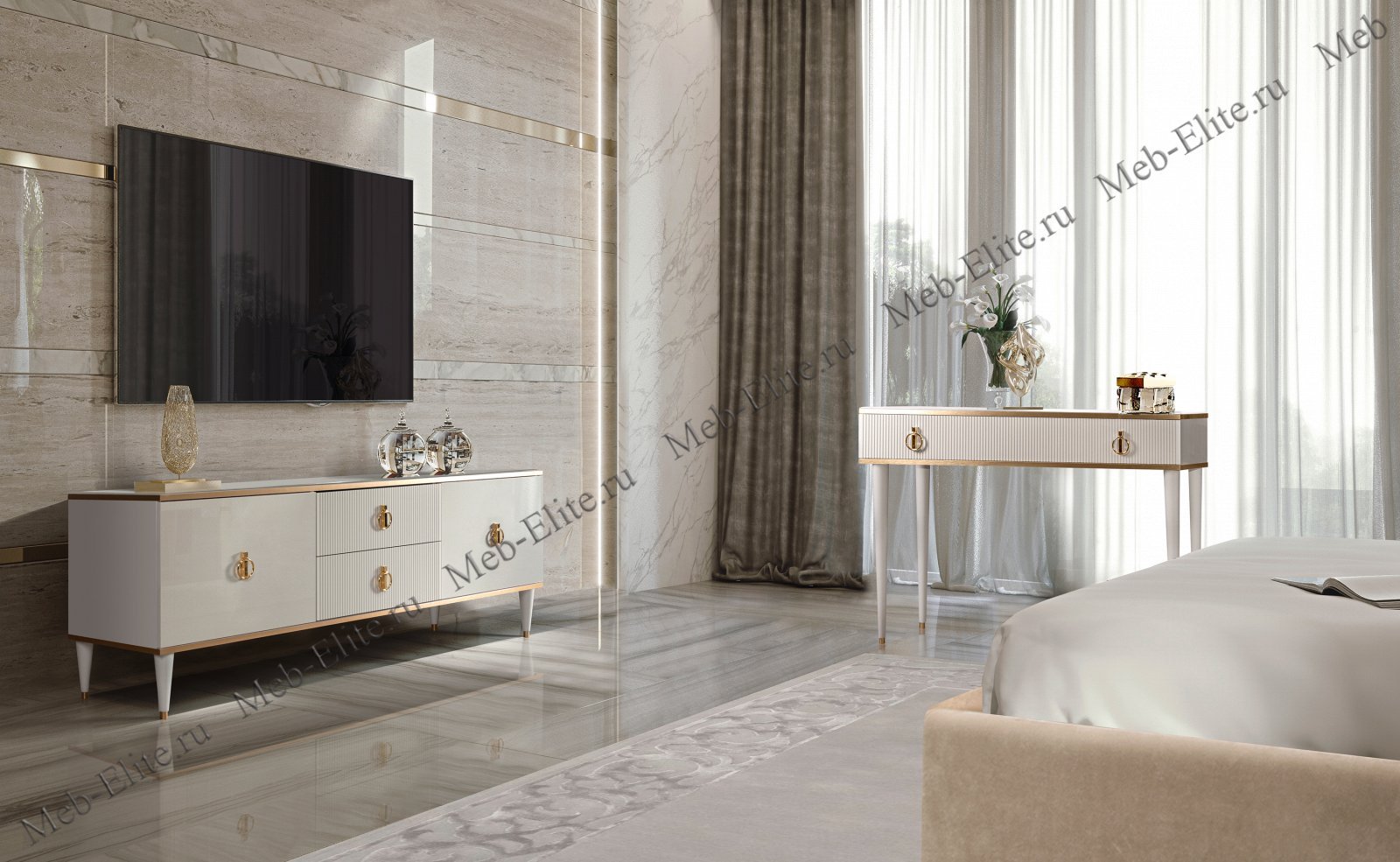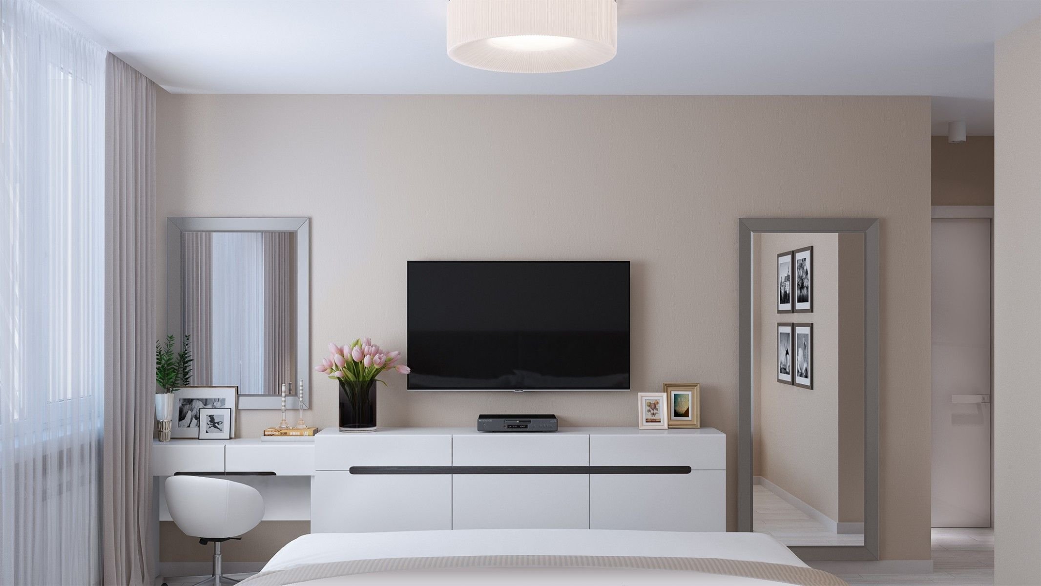 Спальня с телевизором и туалетным столиком