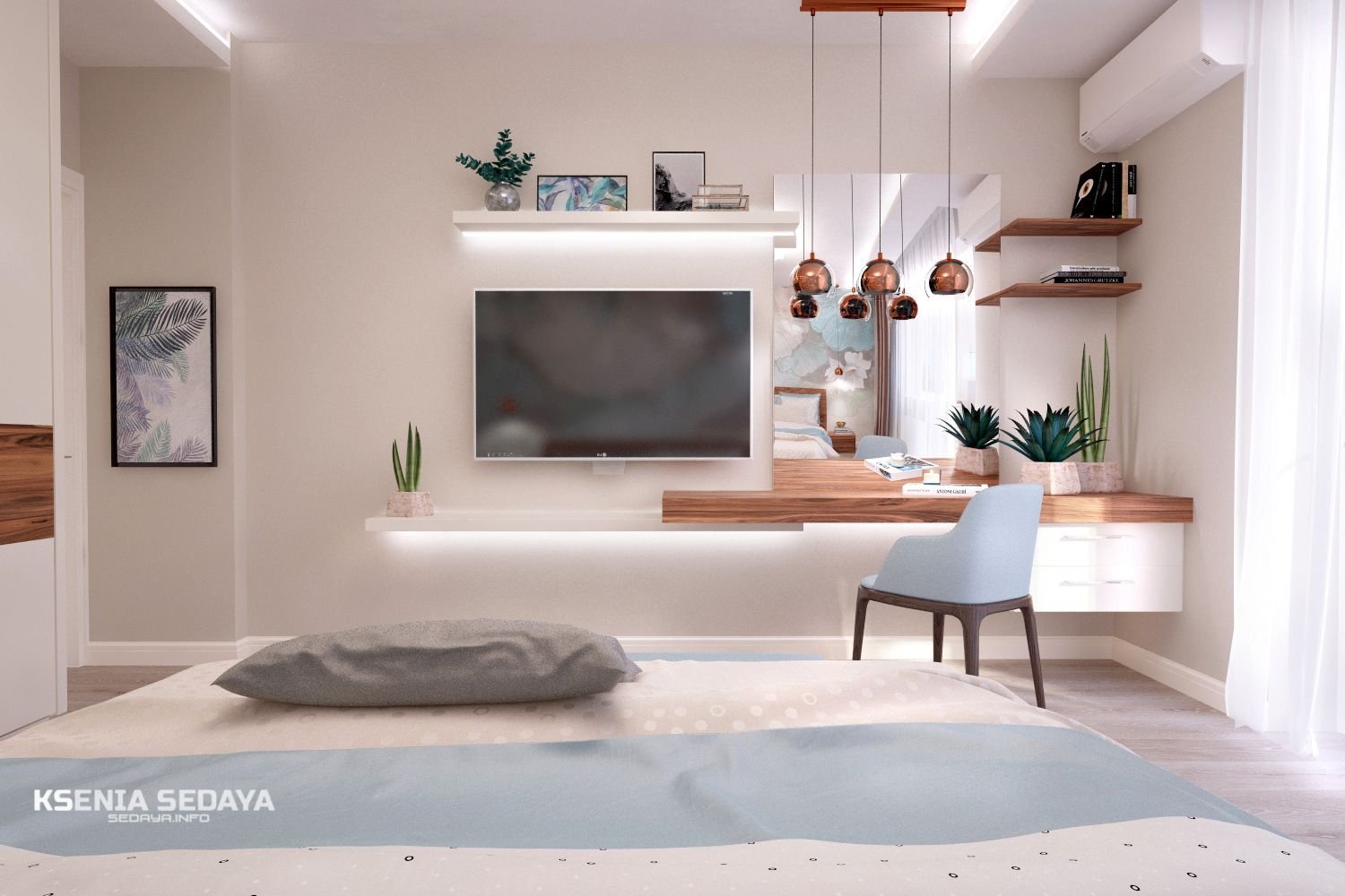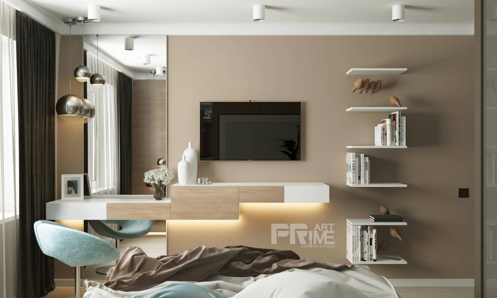Интерьер спальни с телевизором