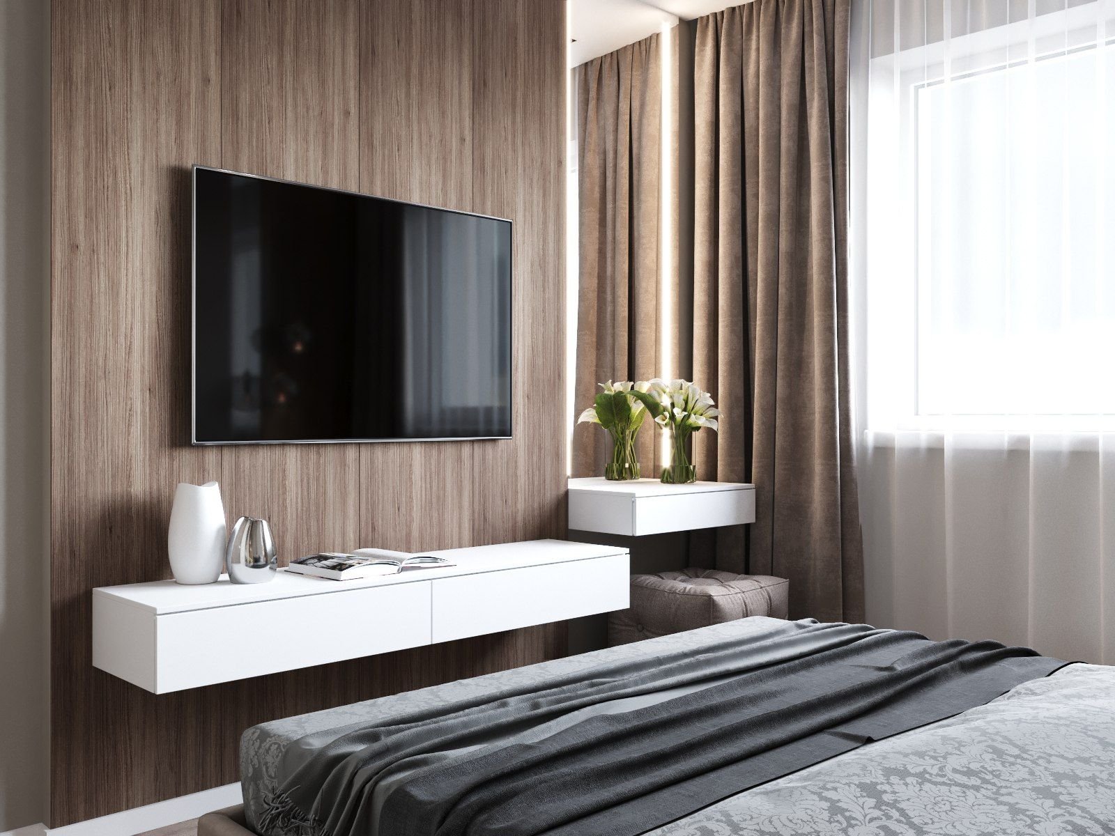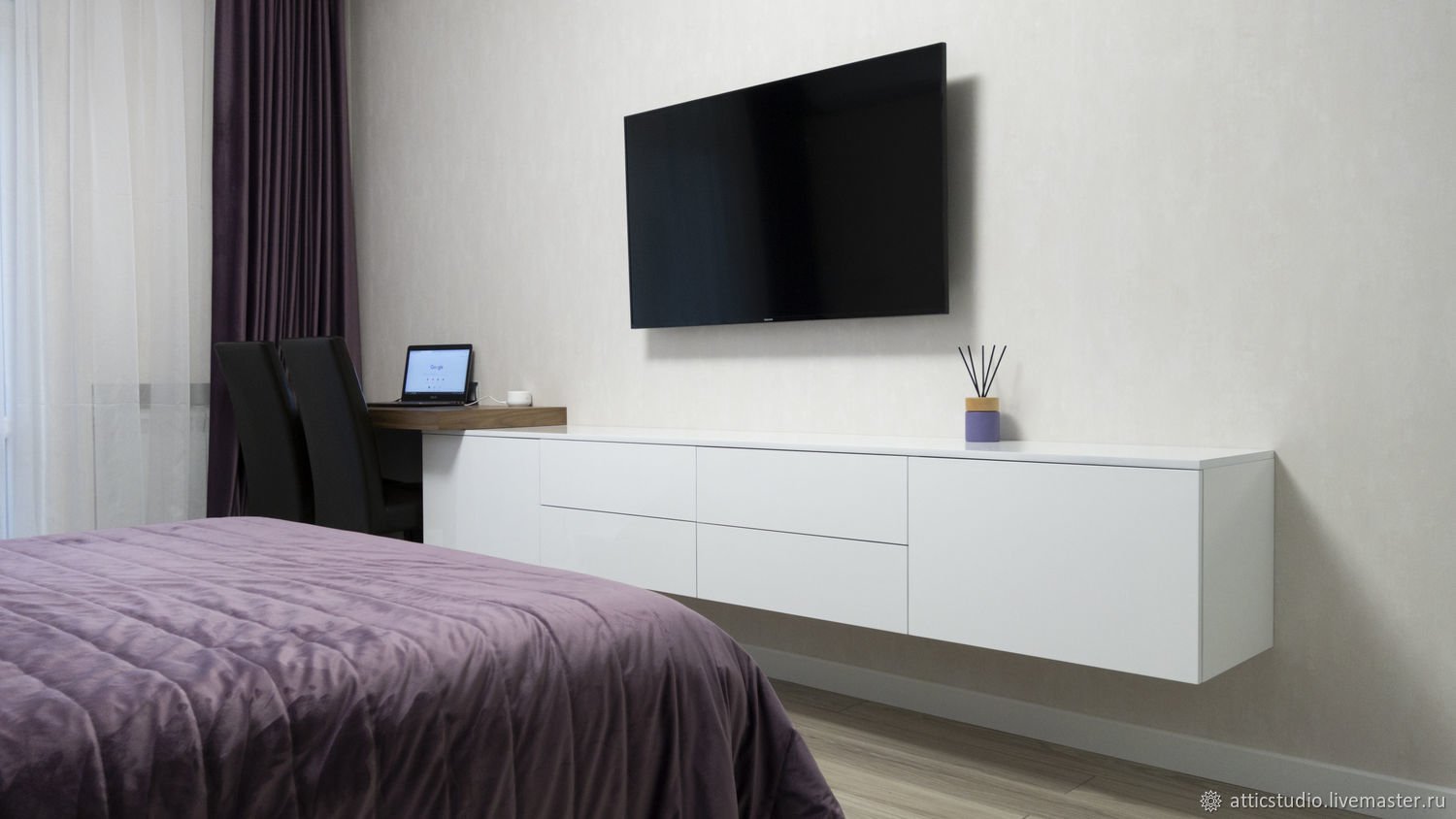Подвесная тумба под телевизор в спальню
