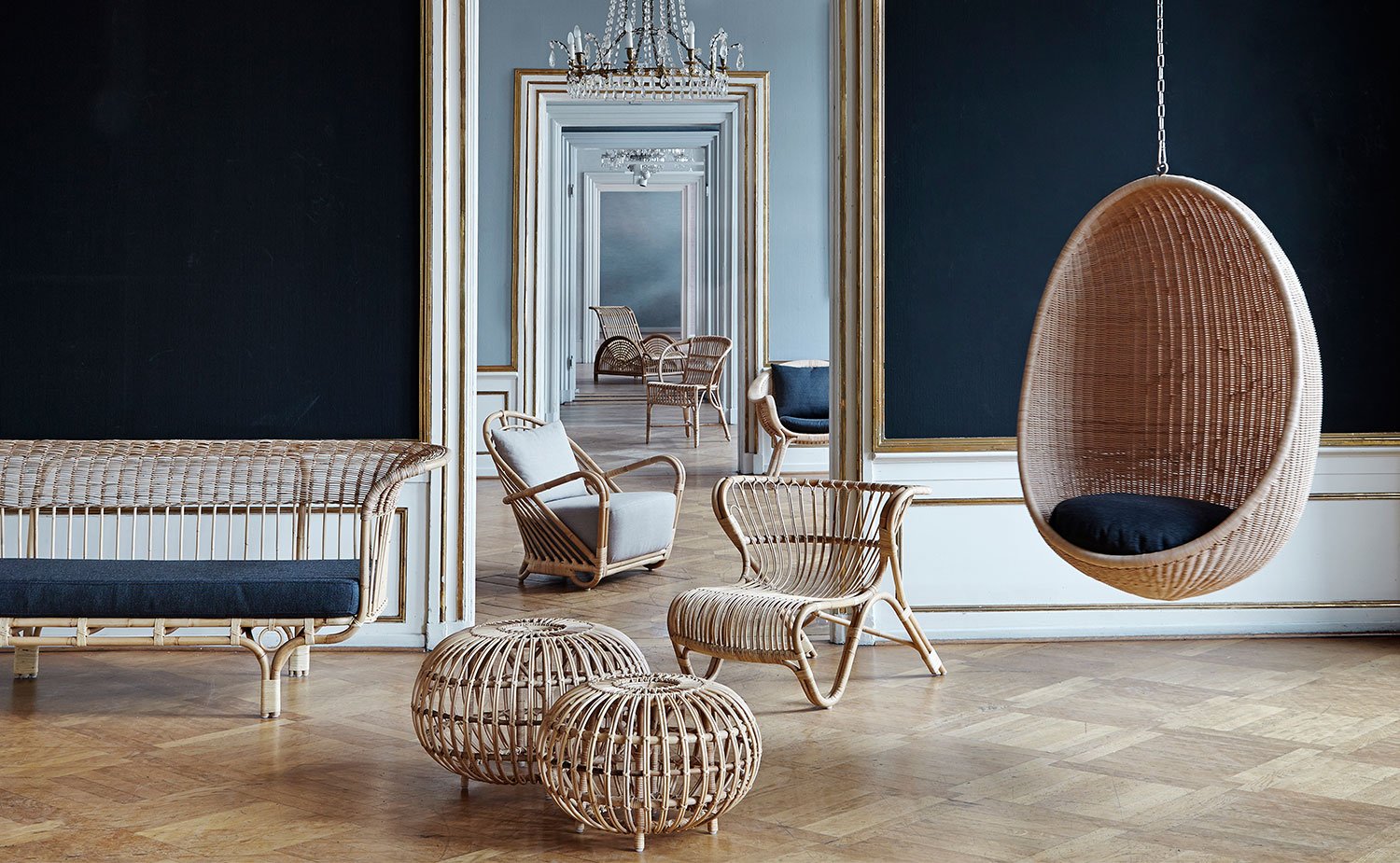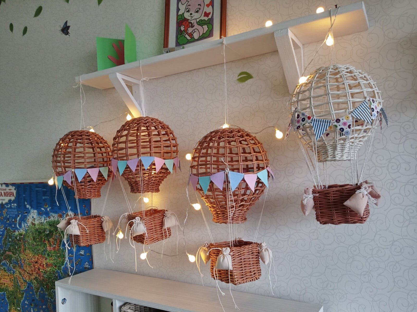Гирлянда из ротанга в интерьере