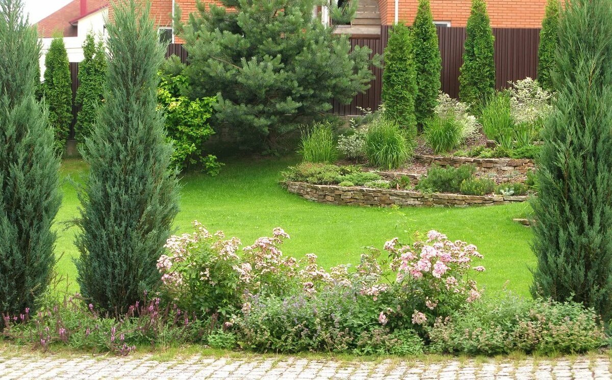 Миксбордер с можжевельником Скайрокет