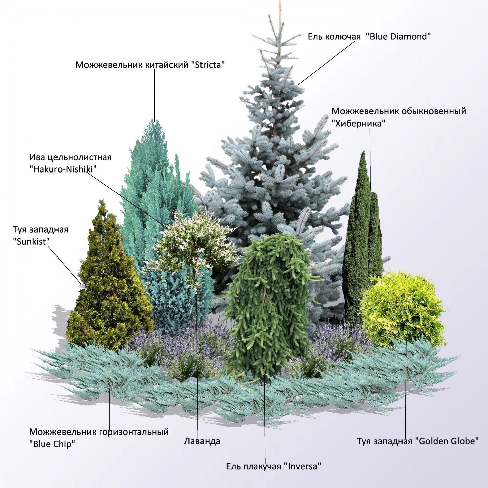 Схема посадки миксбордера с хвойными растениями