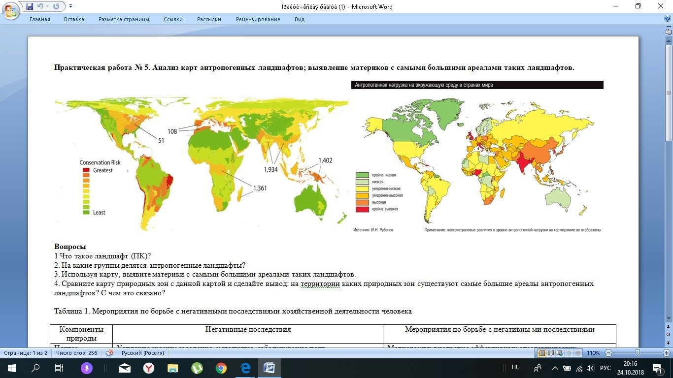 Антропогенные ландшафты карта