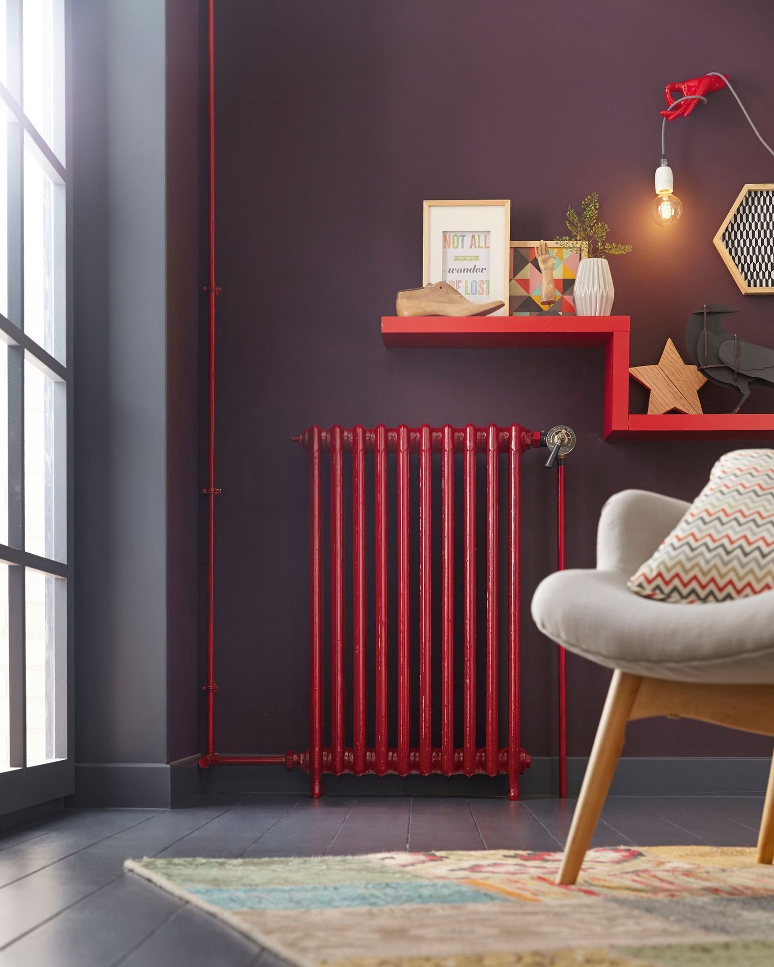 Красные батареи в интерьере
