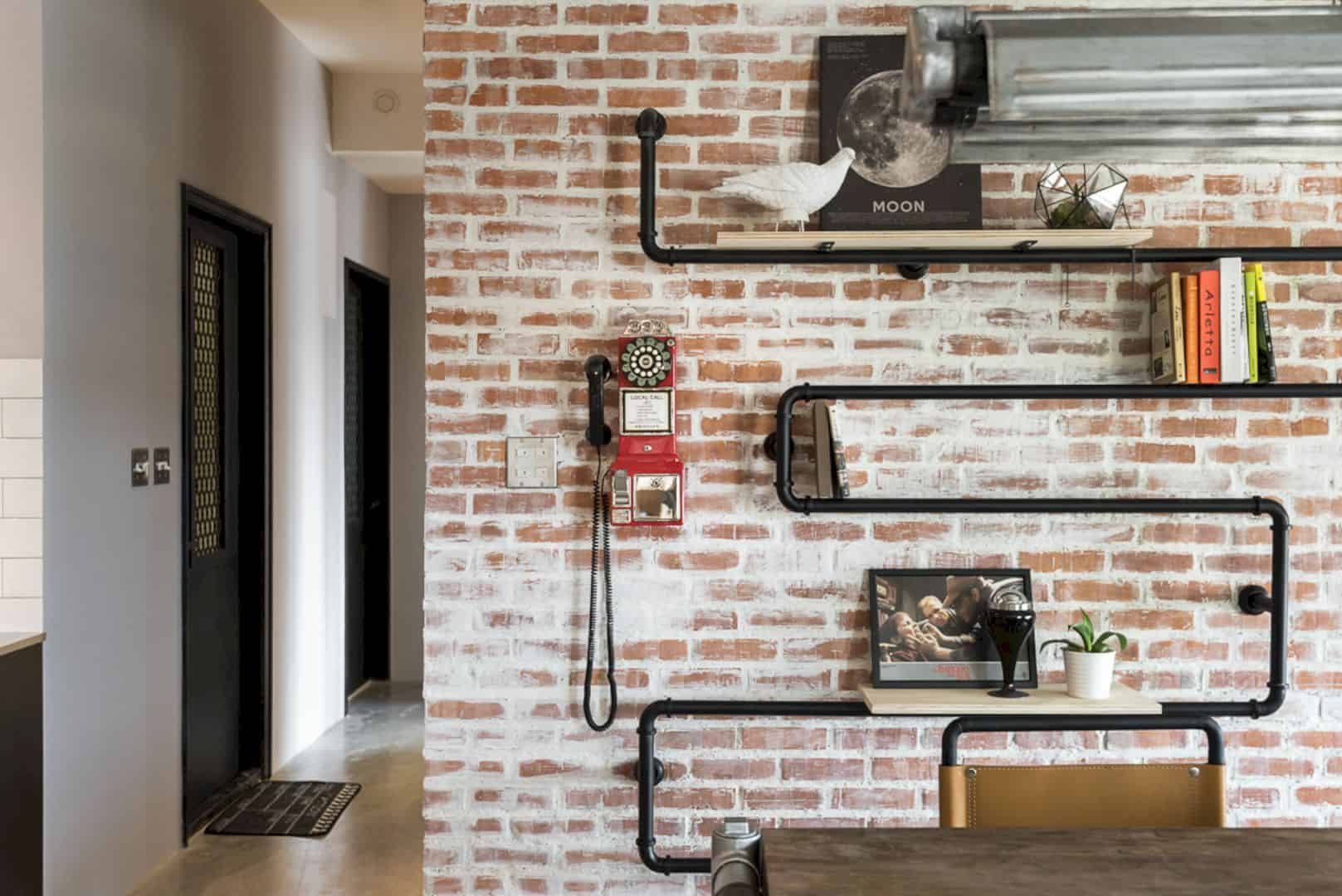 Подсветка кирпичной стены в стиле лофт