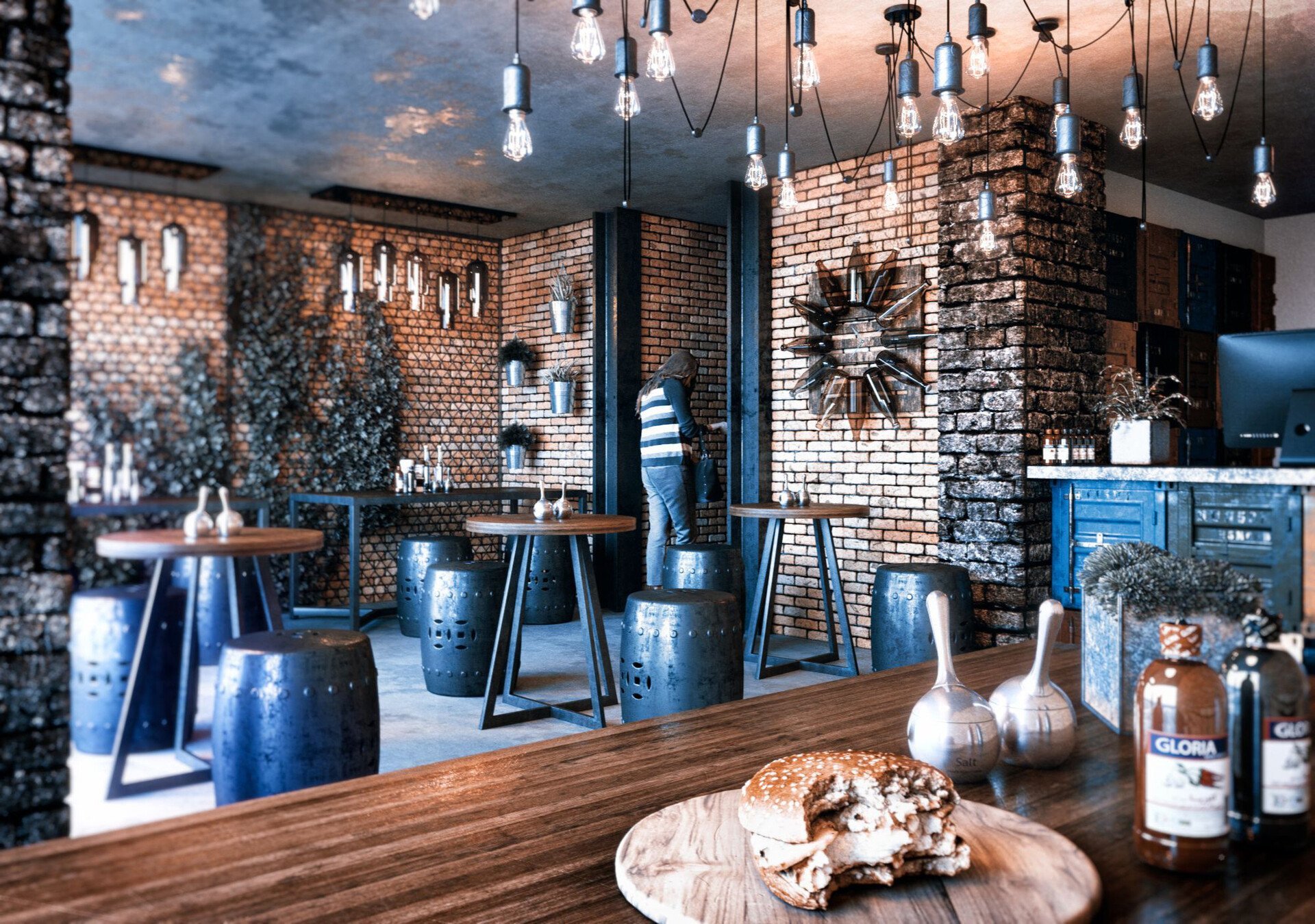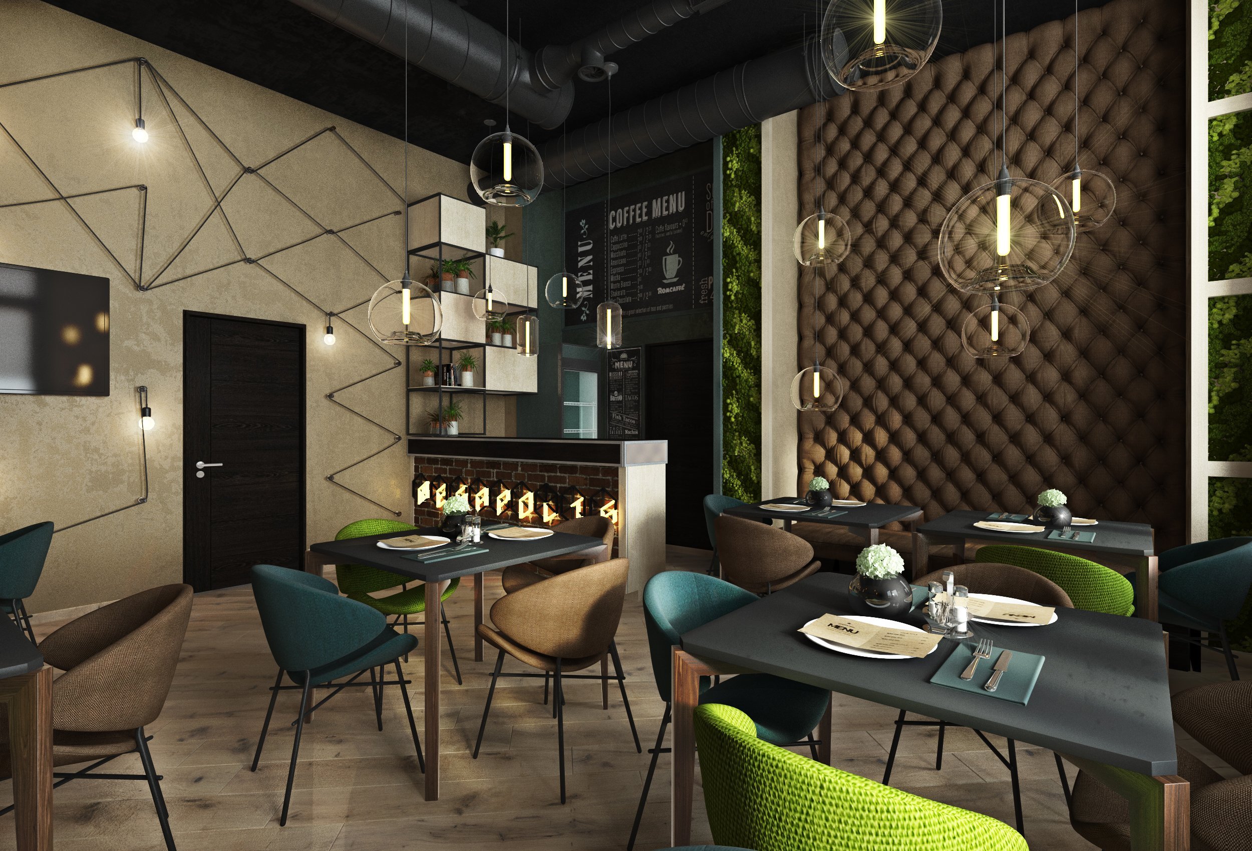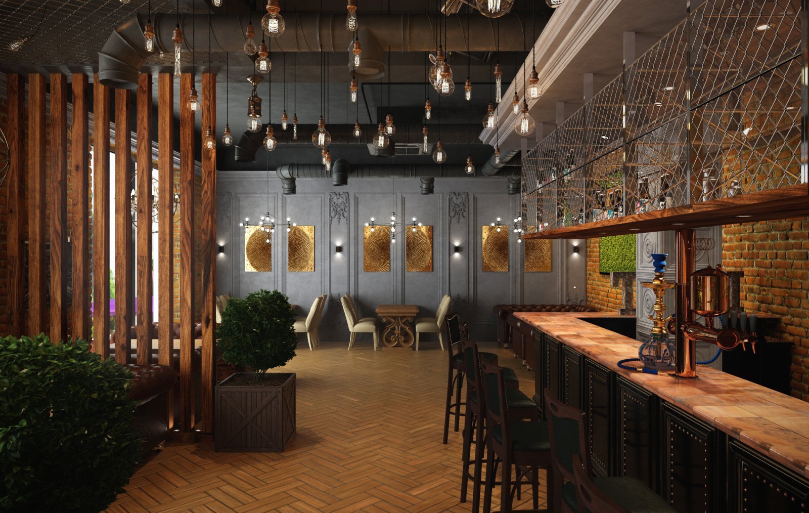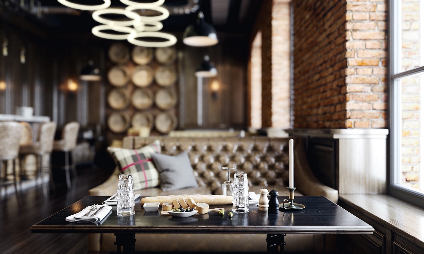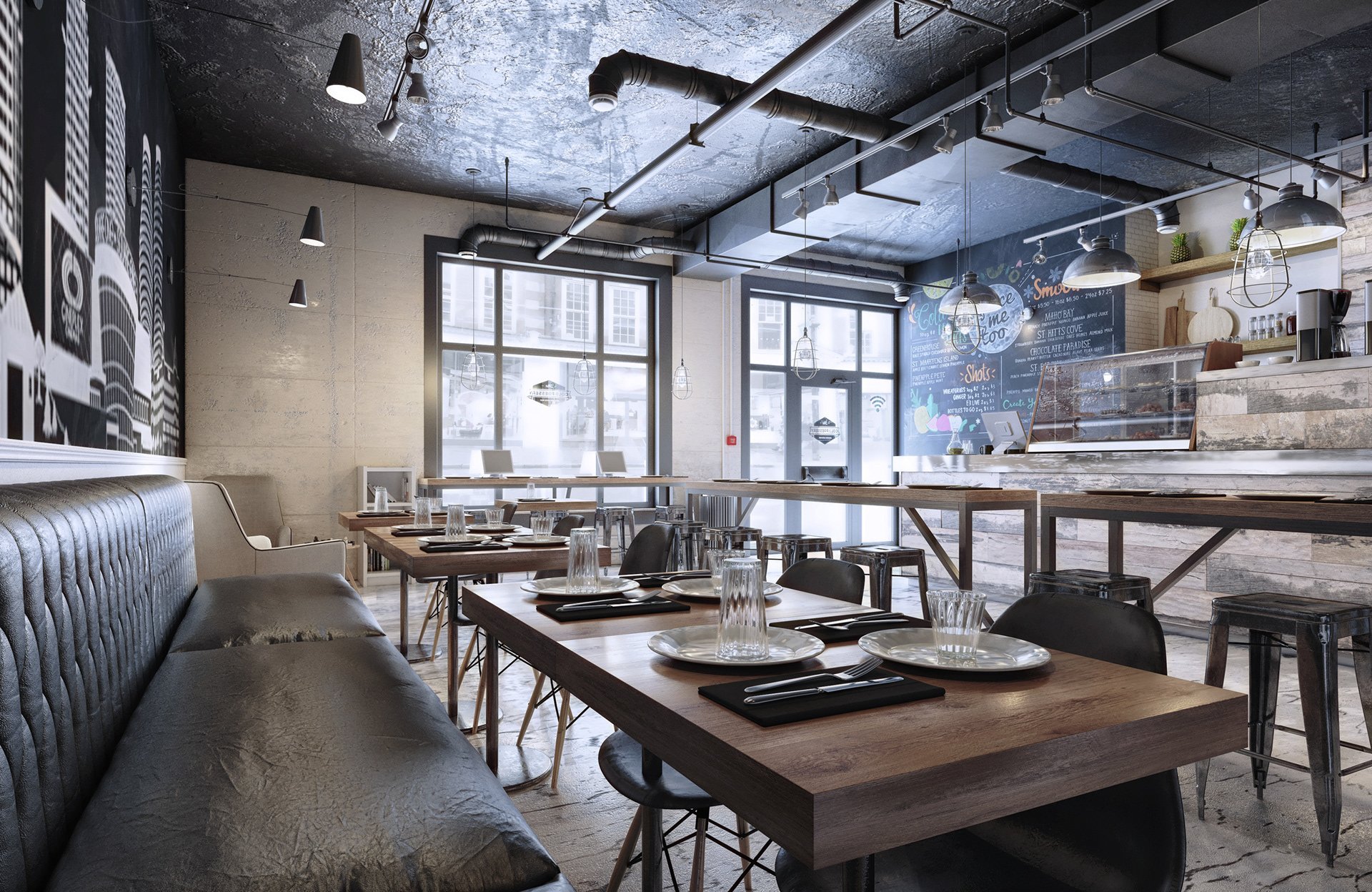 Визуализация кафе в стиле лофт