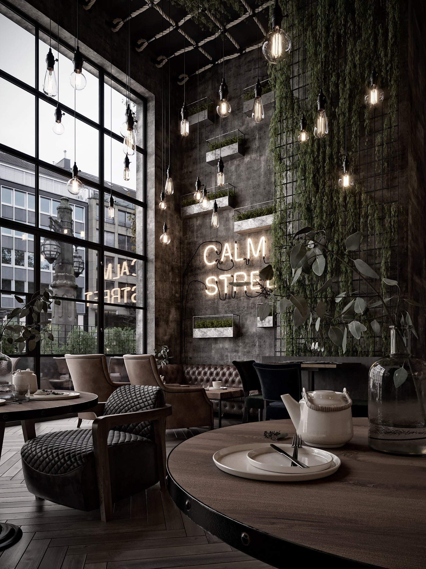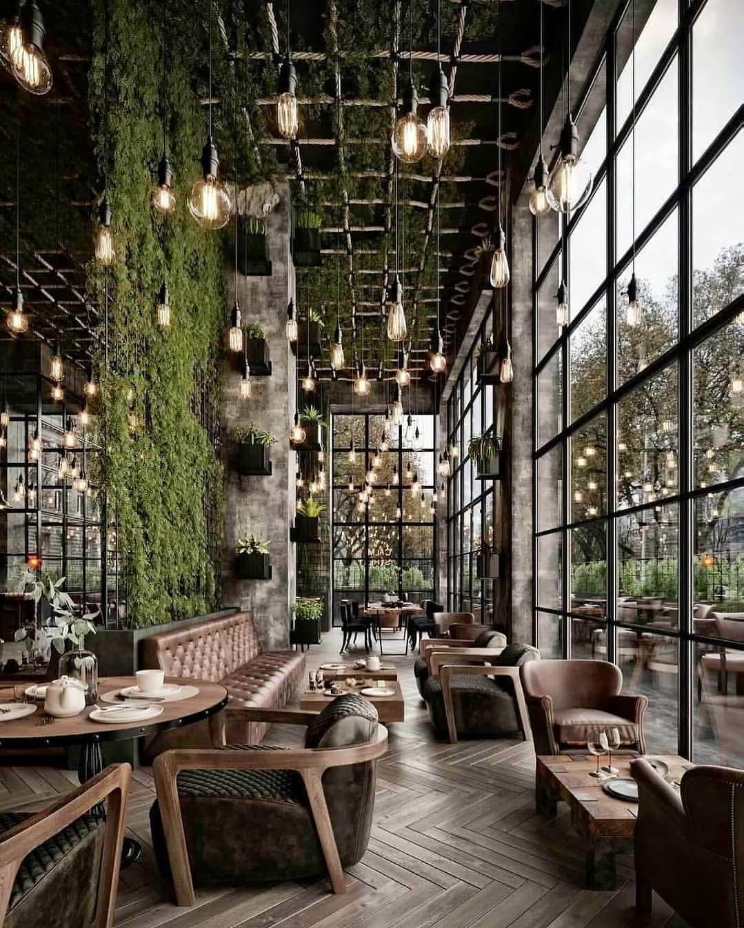 Кафе в стиле лофт с панорамными окнами