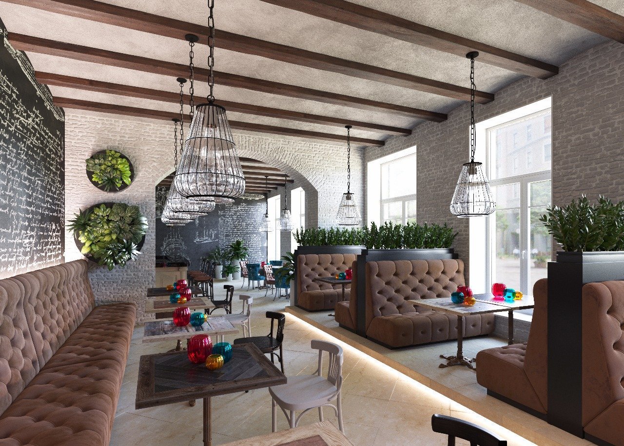Кафе в стиле лофт с элементами классики