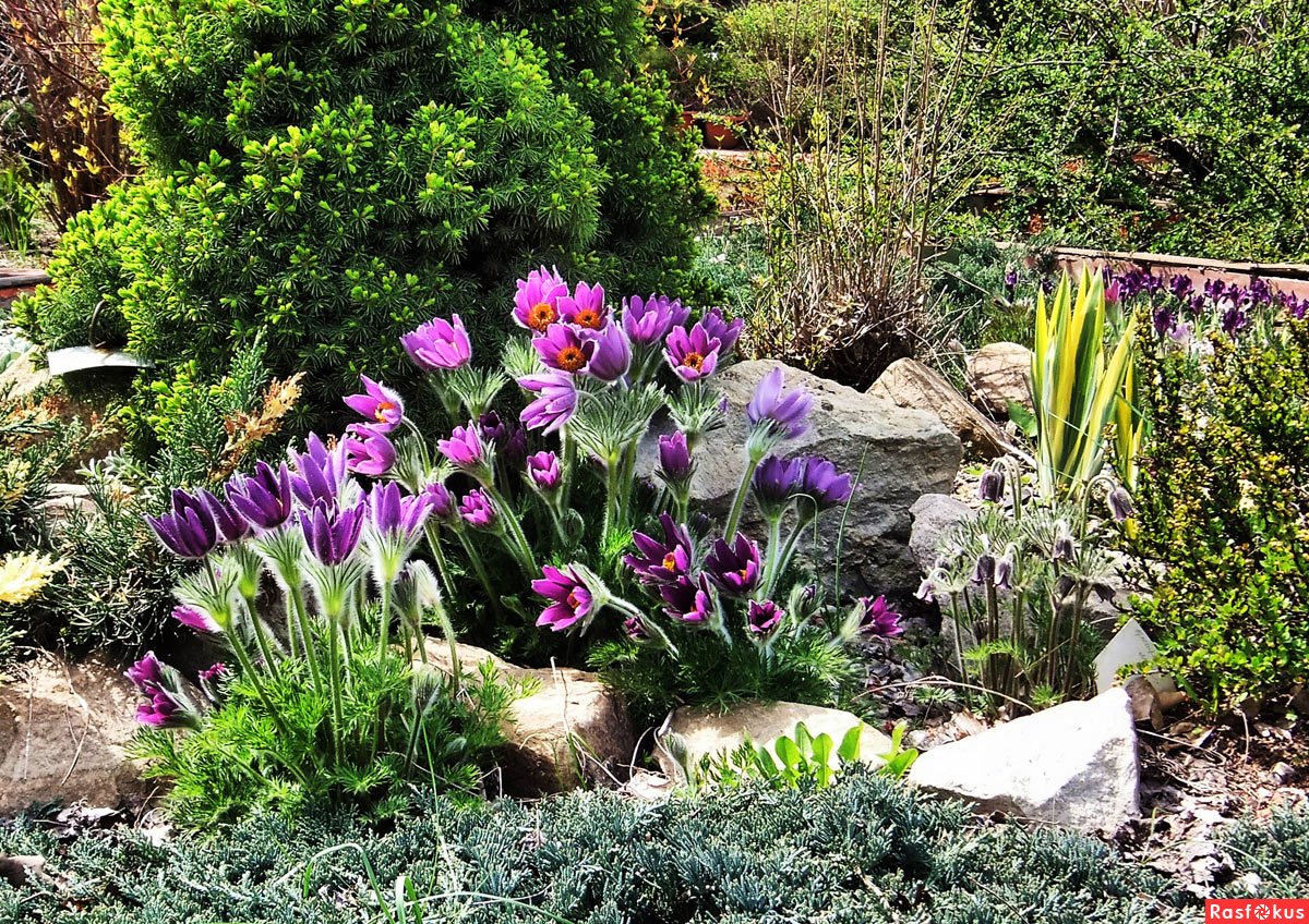 Альпийская горка с крокусы морозник гиацинт