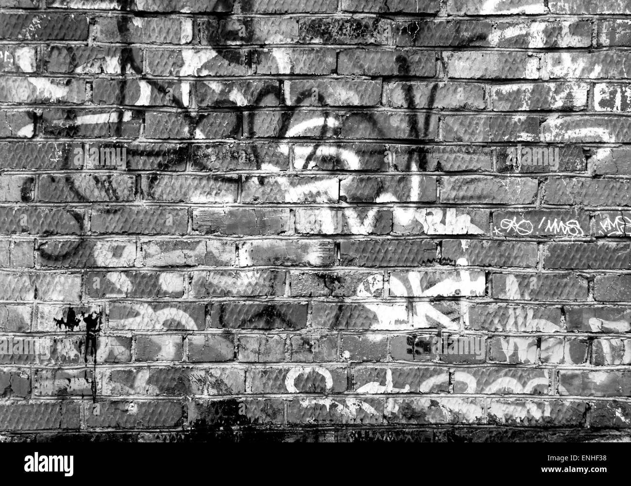 Обшарпанная кирпичная стена с граффити