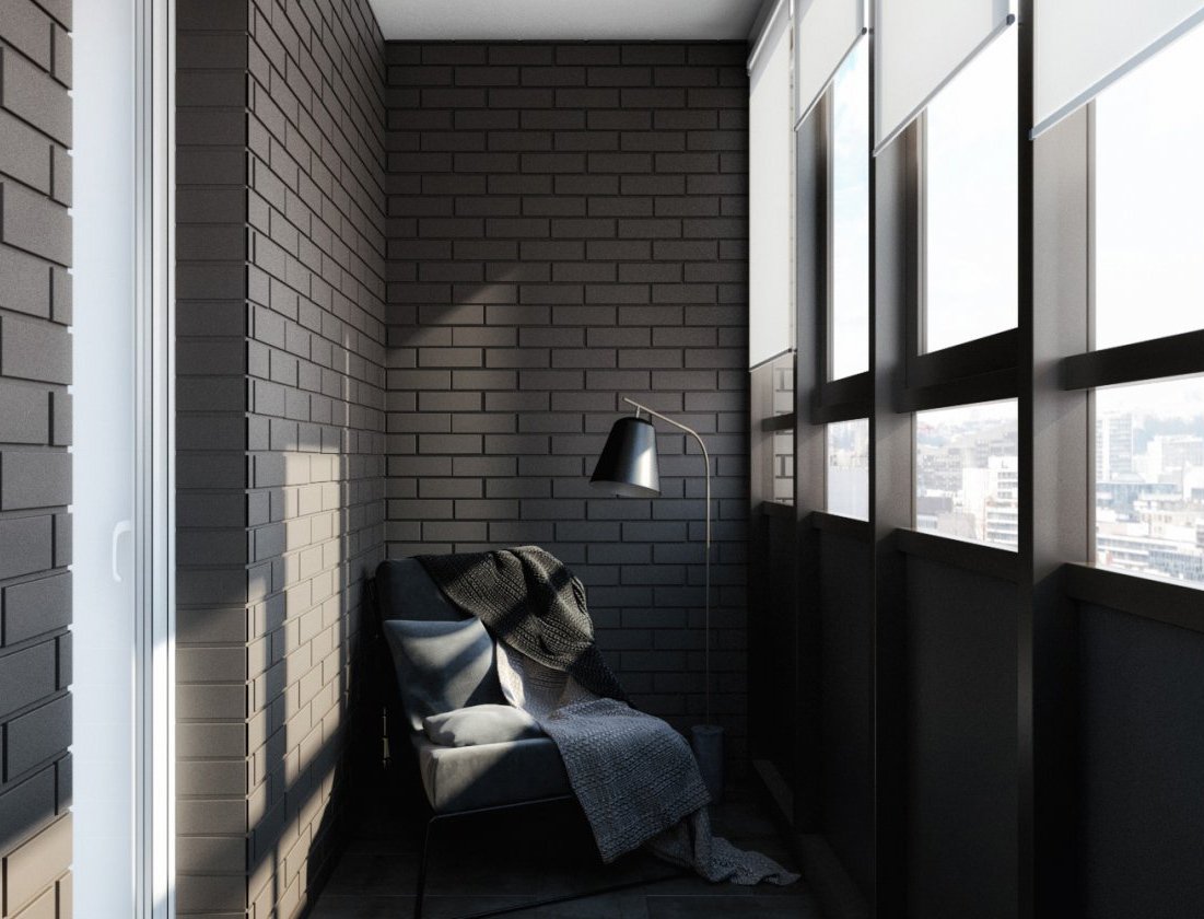 Серый кирпич на лоджии