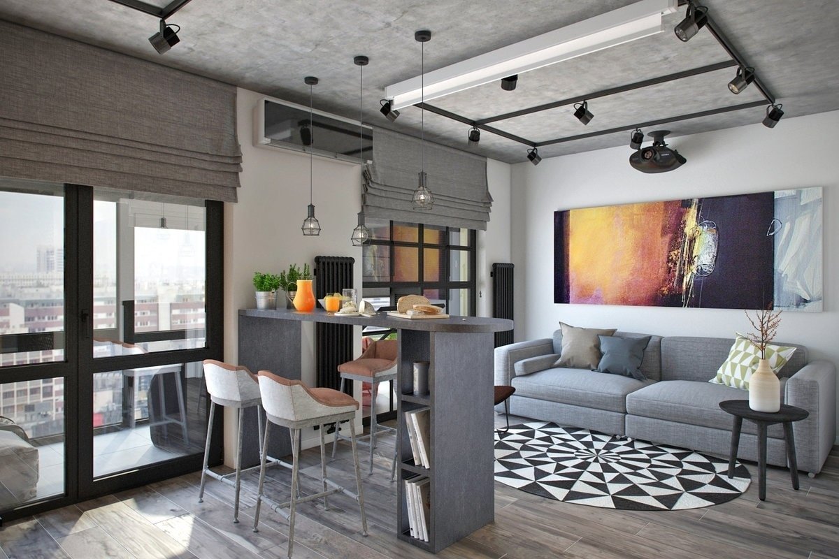 Интерьер лофт гостиная 30кв