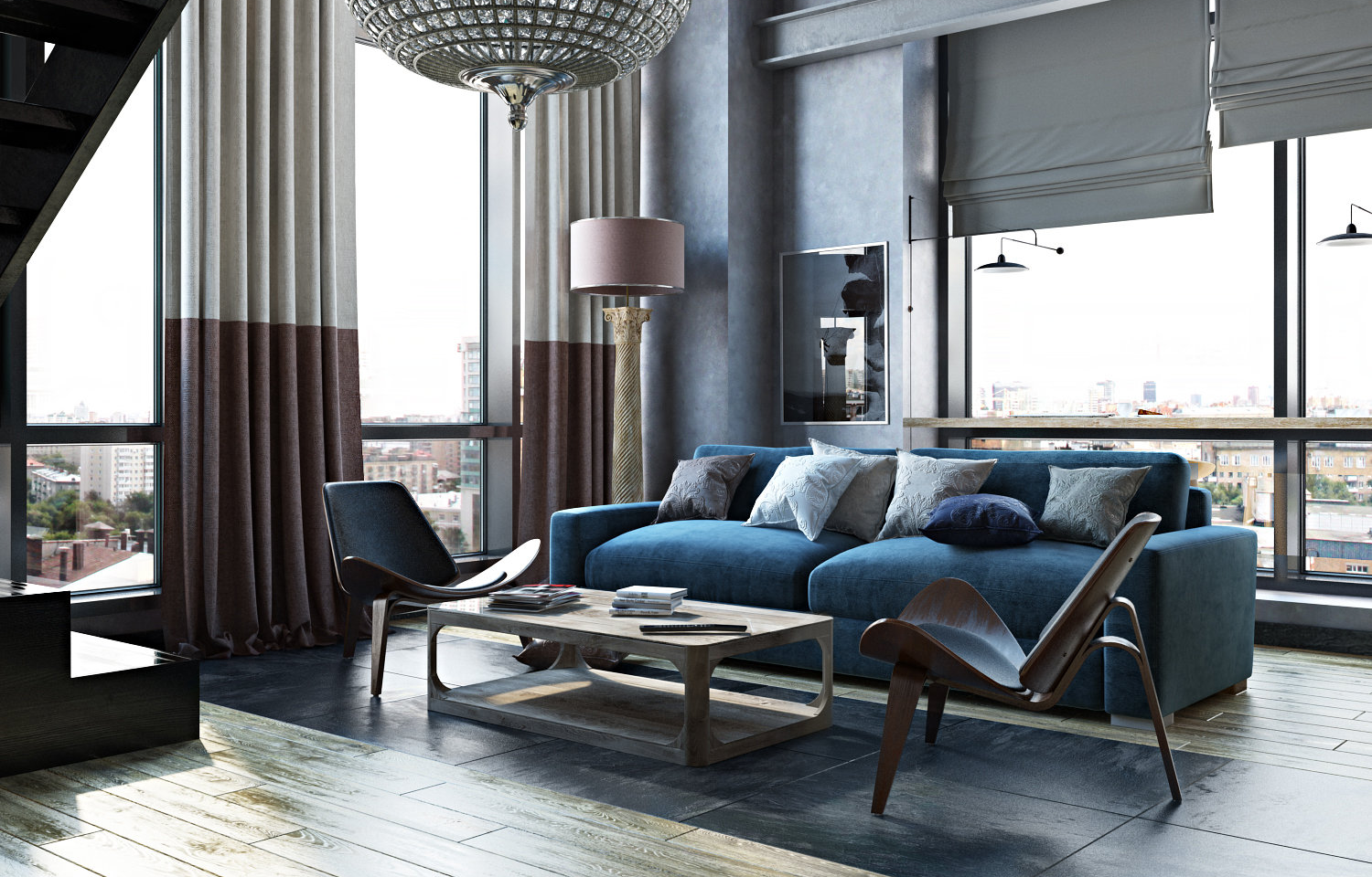 Шторы лофт в интерьере