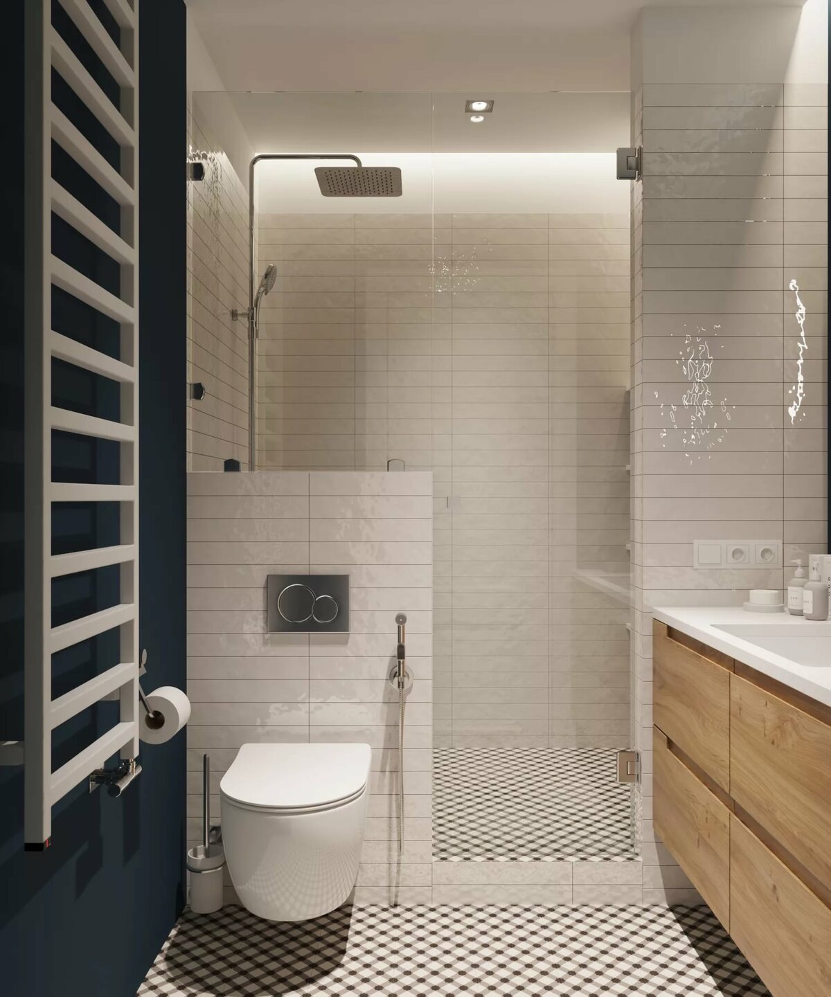 Планировка ванной комнаты совмещенной с туалетом с душевой кабиной