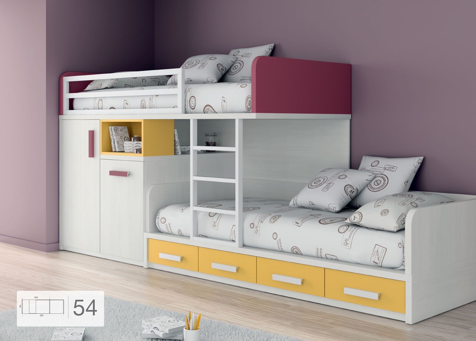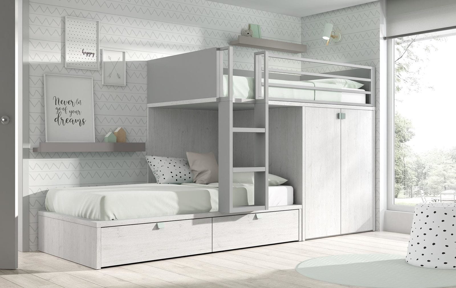 Двухъярусная кровать со встроенными шкафами