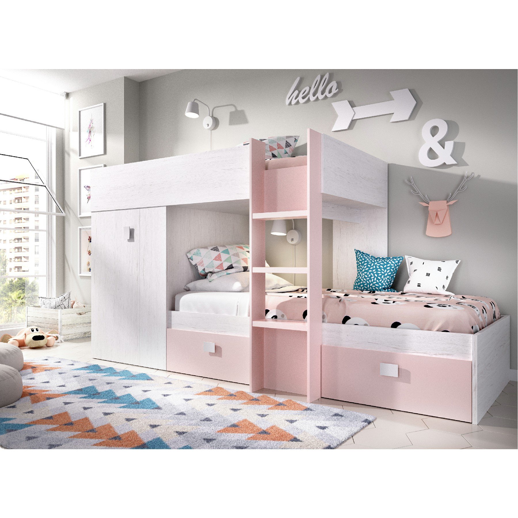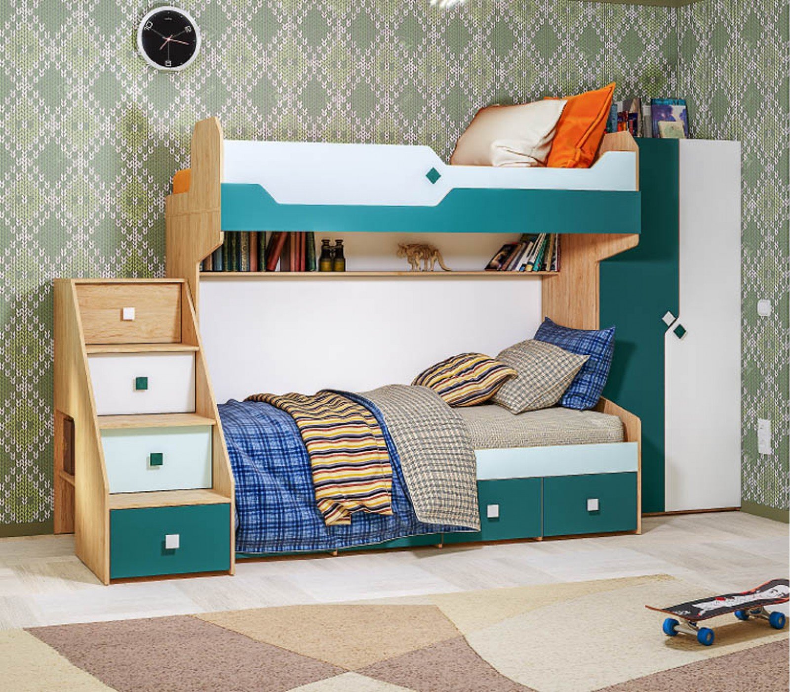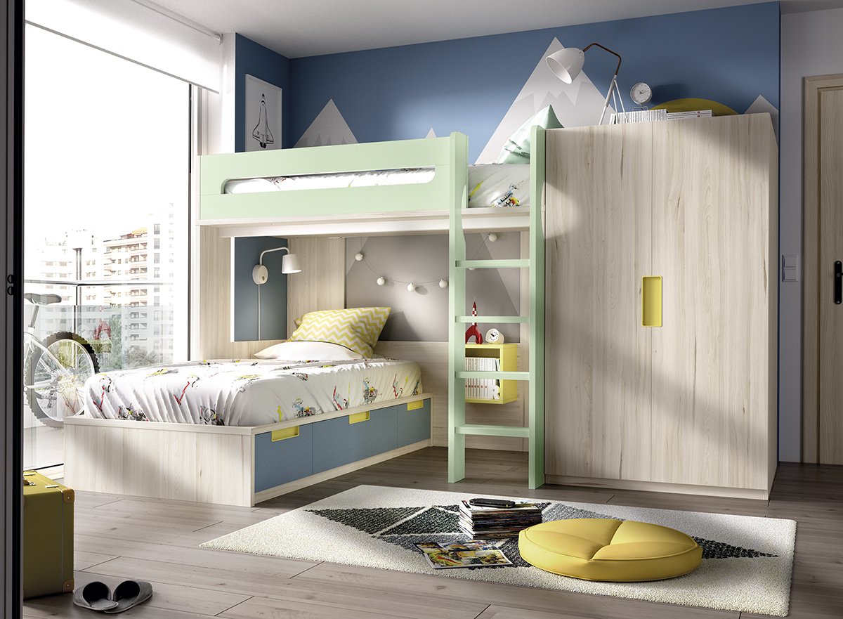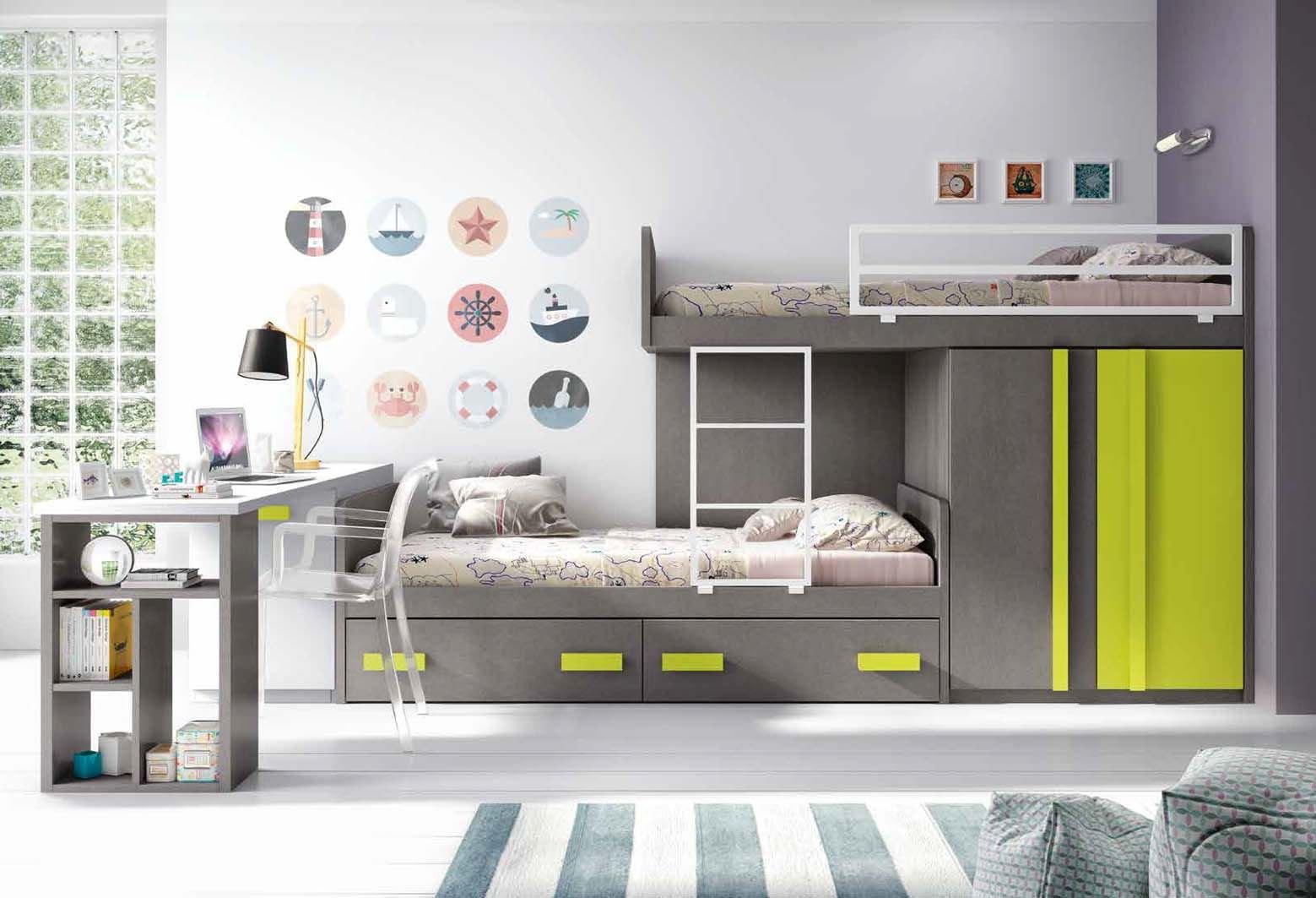 Функциональная детская комната с двухъярусной кроватью