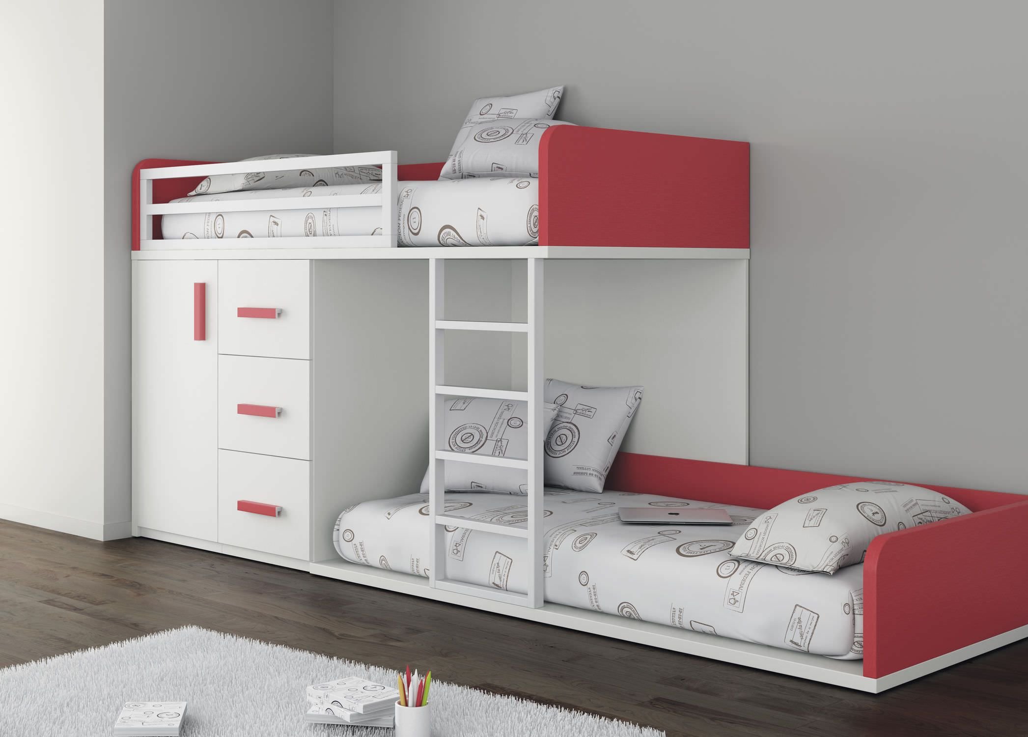 Невысокие двухъярусные кровати для двоих детей