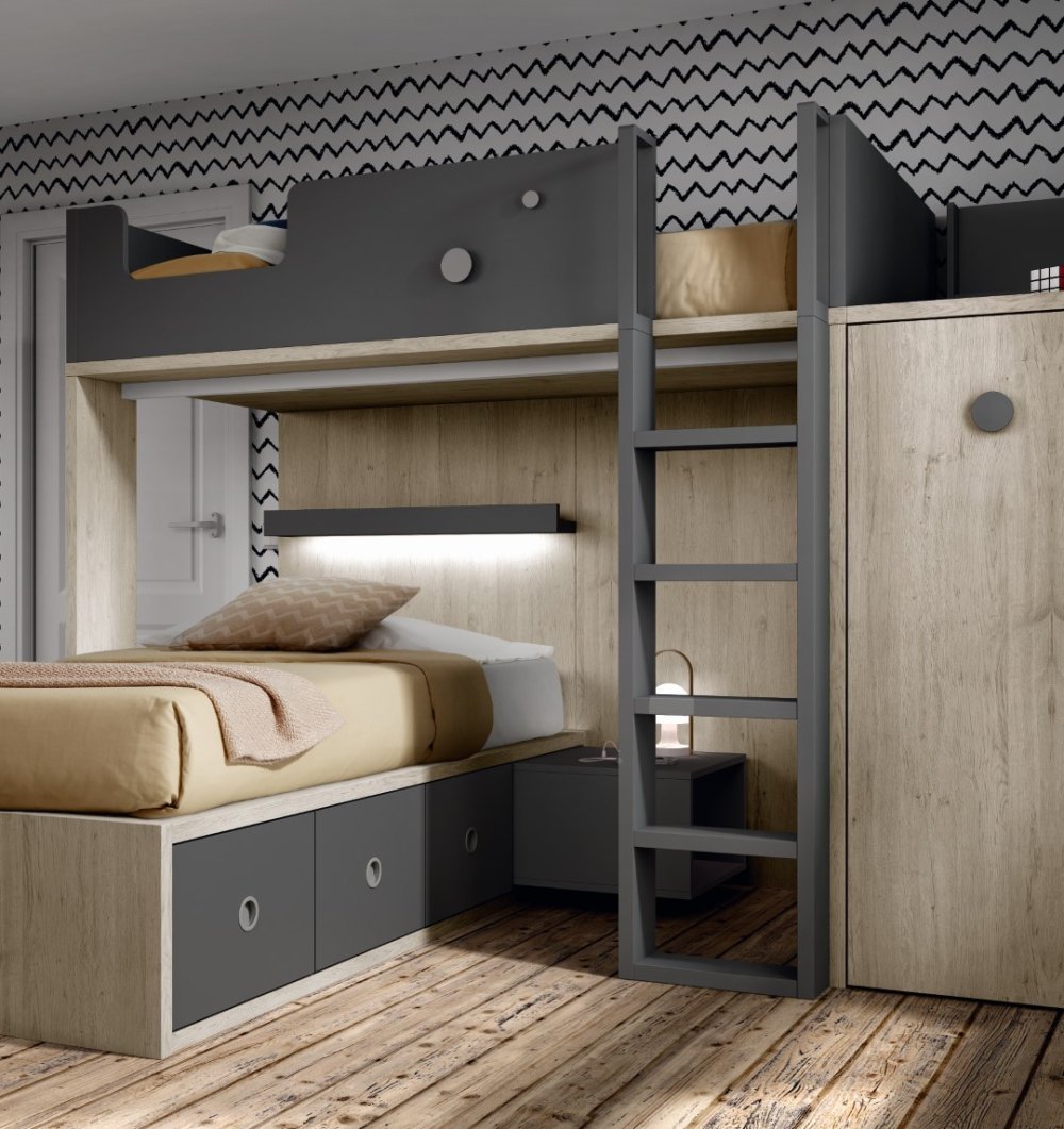 Двухъярусная кровать со смещением для подростков