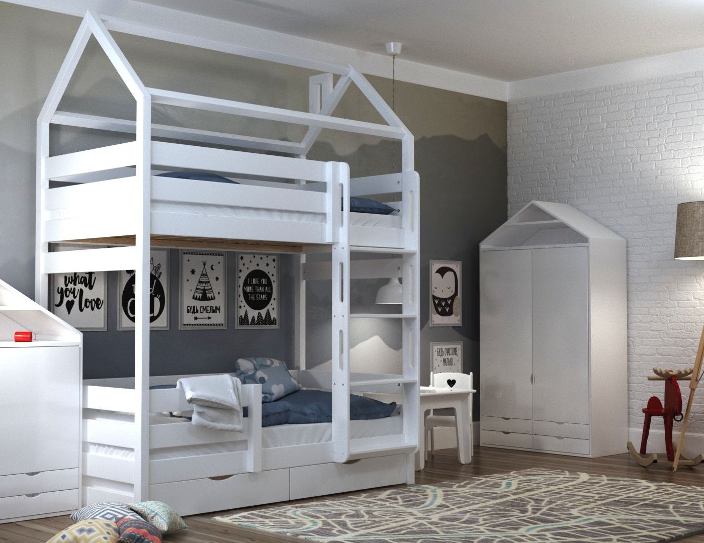 Комната для двоих детей с двухъярусной кроватью