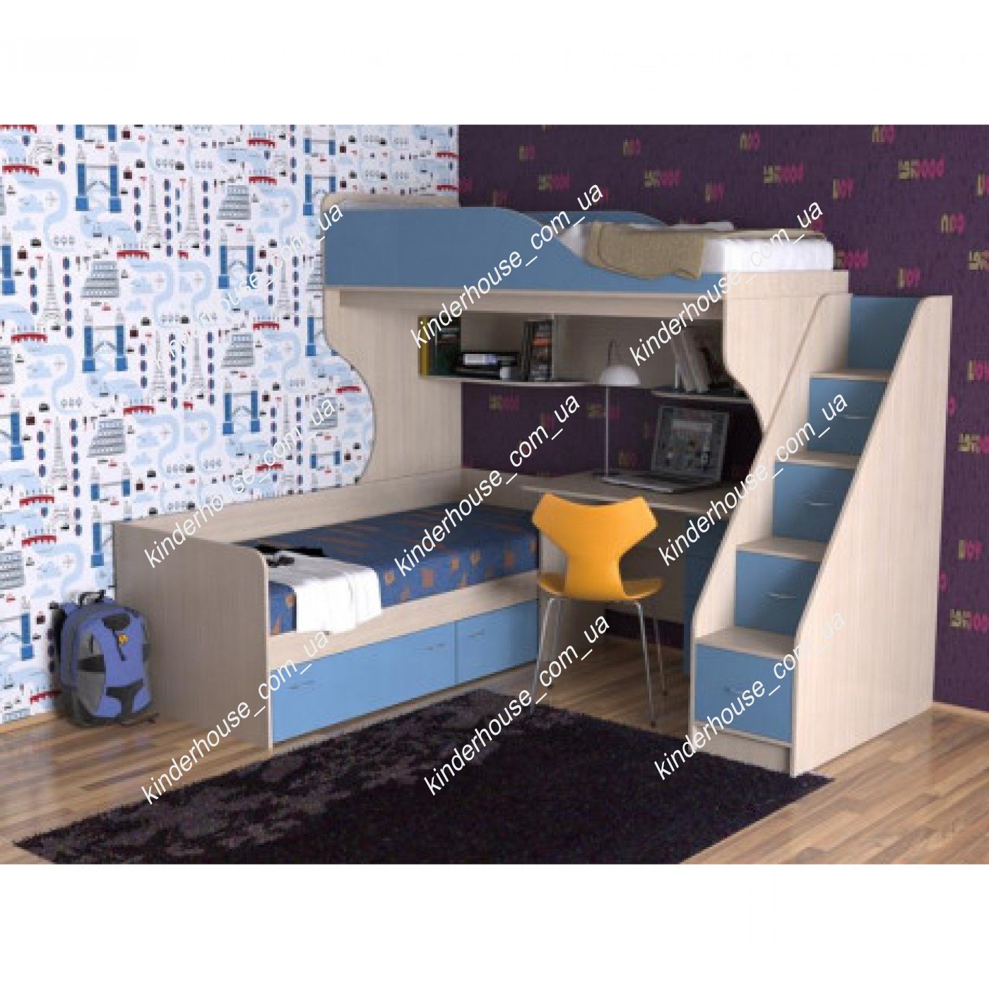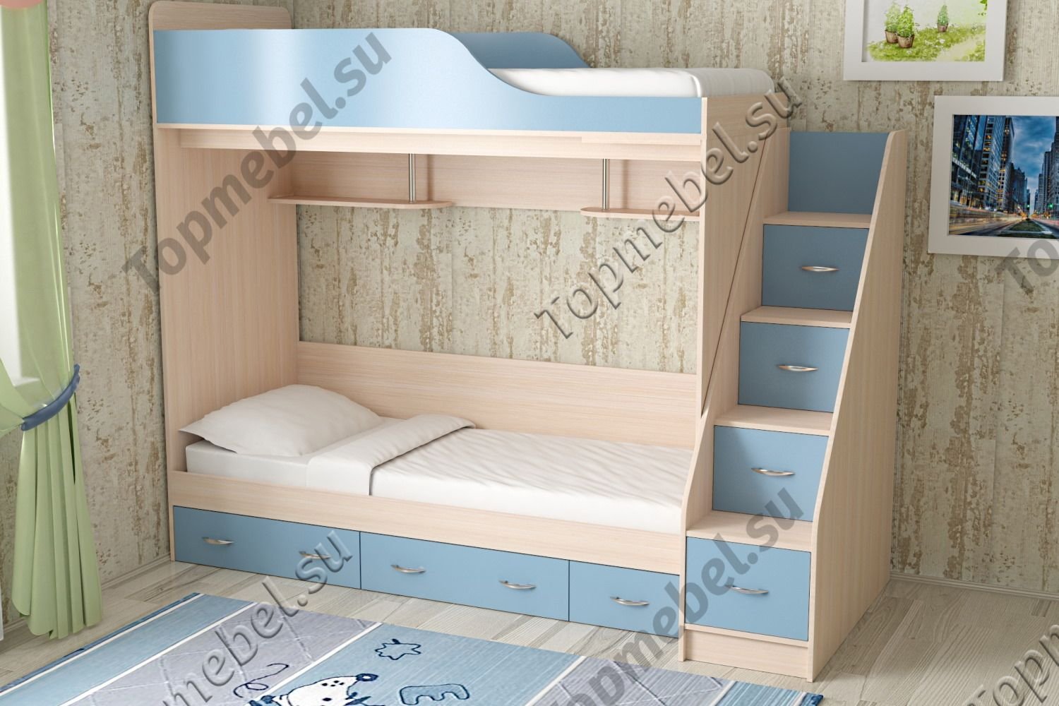 Двухъярусная кровать со ступеньками