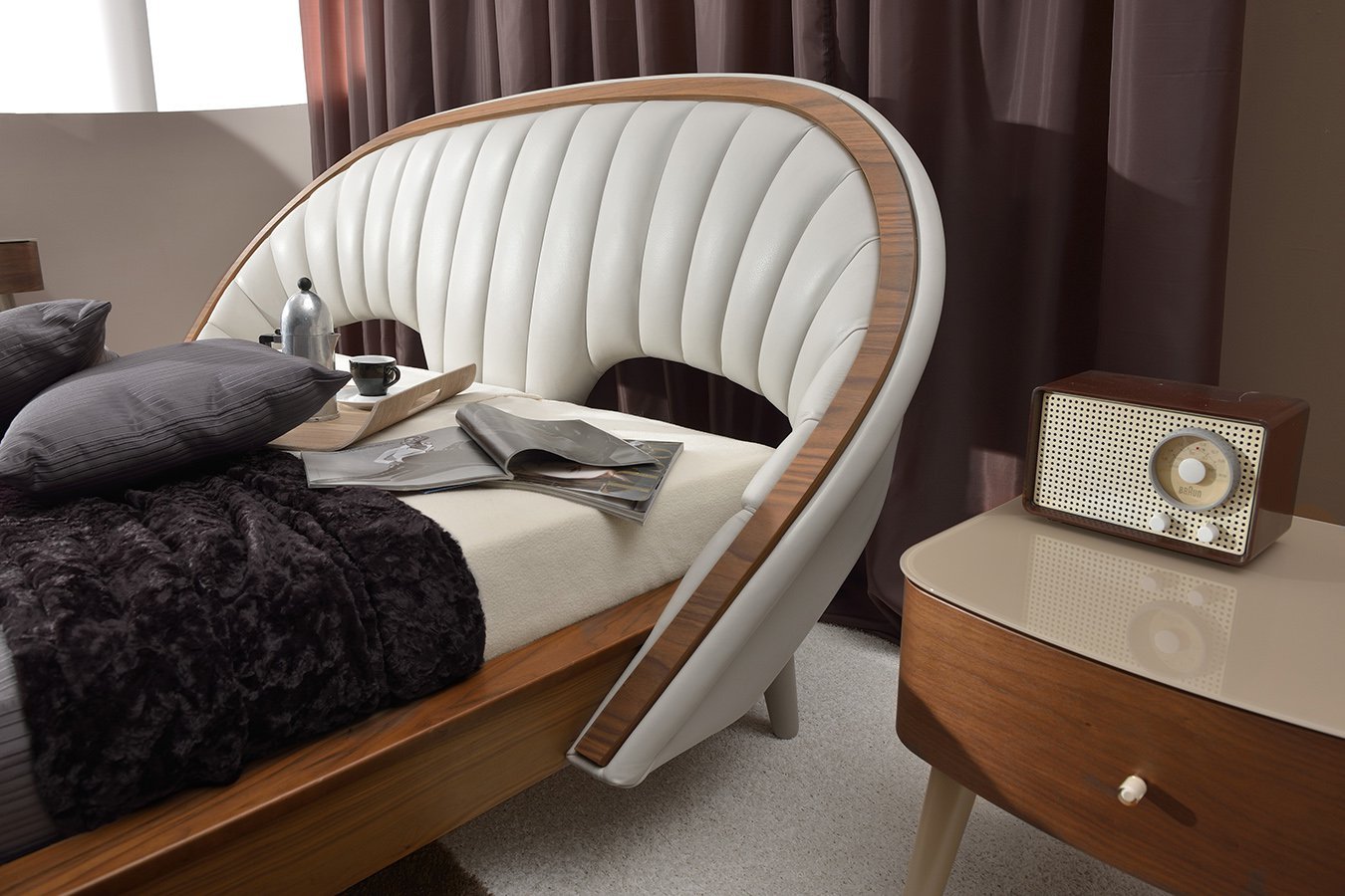 Кровать с изогнутым мягким изголовьем