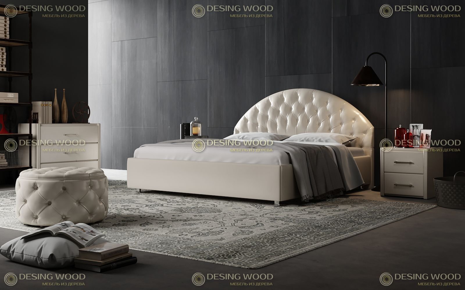 Кровать Кинг сайз с каретной стяжкой