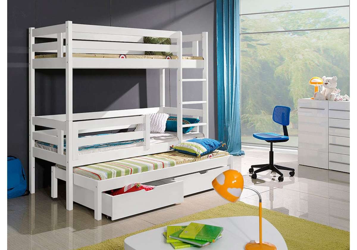 Panana White Solid Wood Triple Bunk Bed 3 Sleeper Twins children