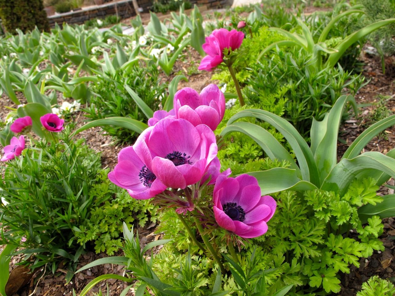 Анемона на клумбе