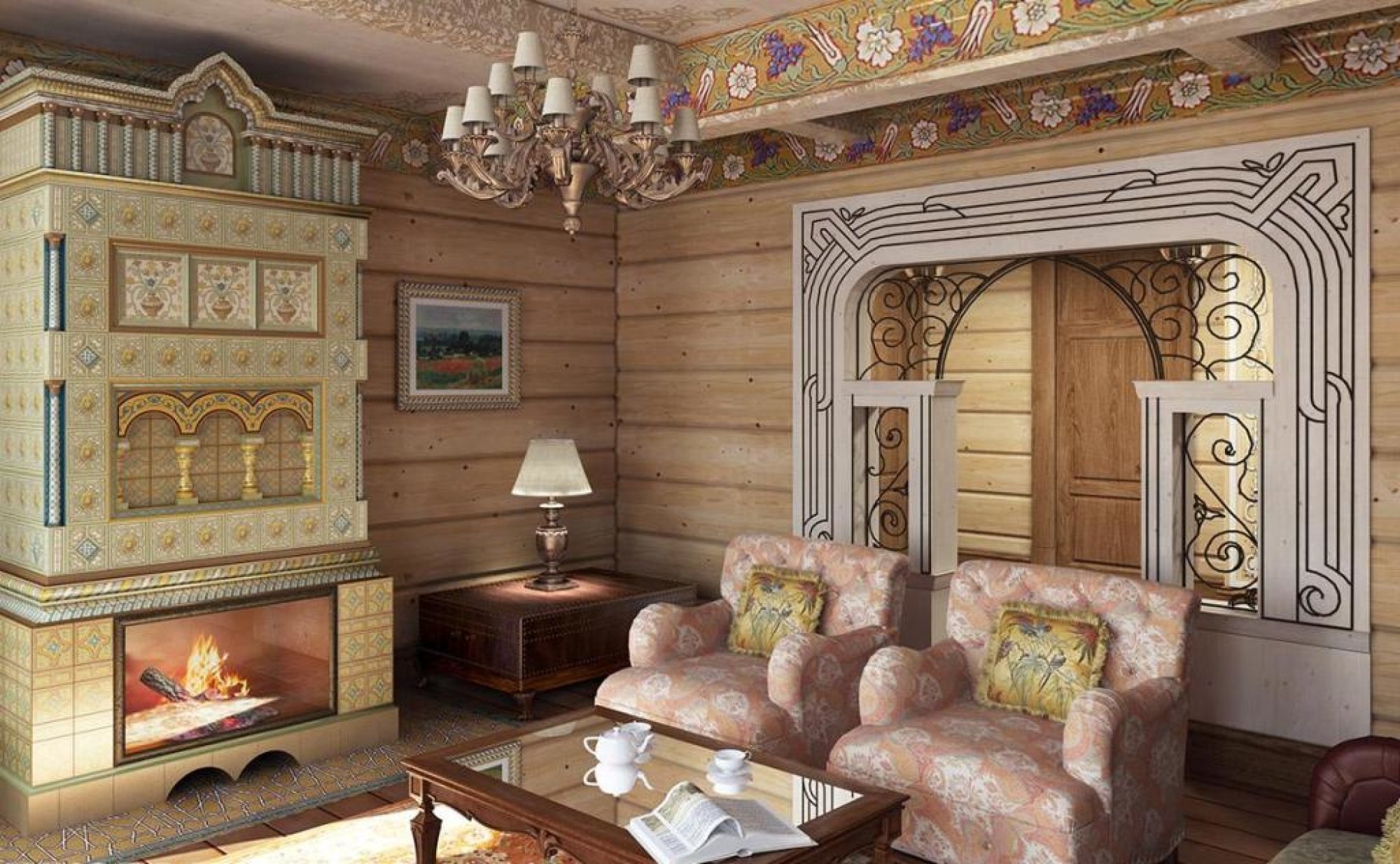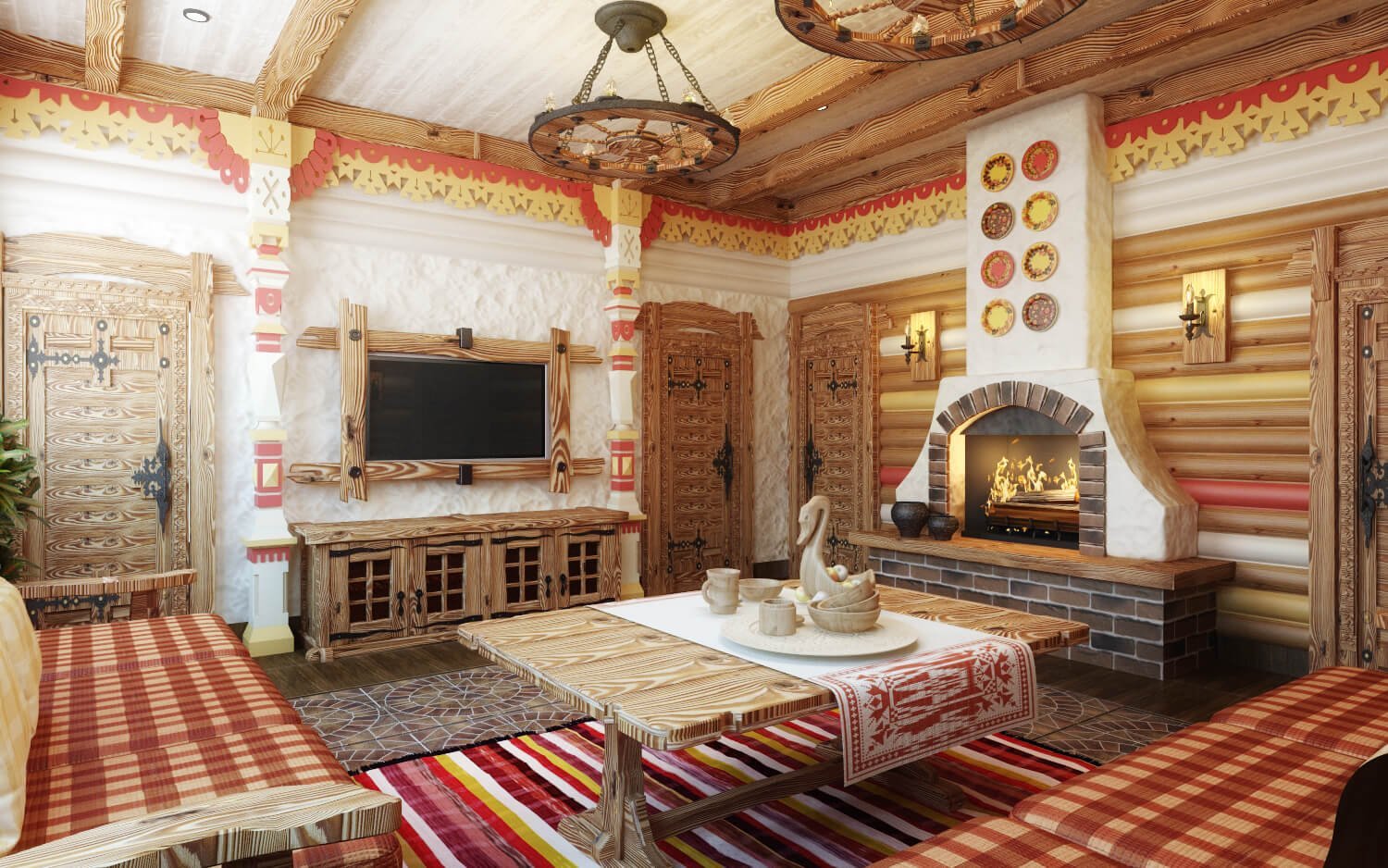 Интерьер комнаты в русском стиле