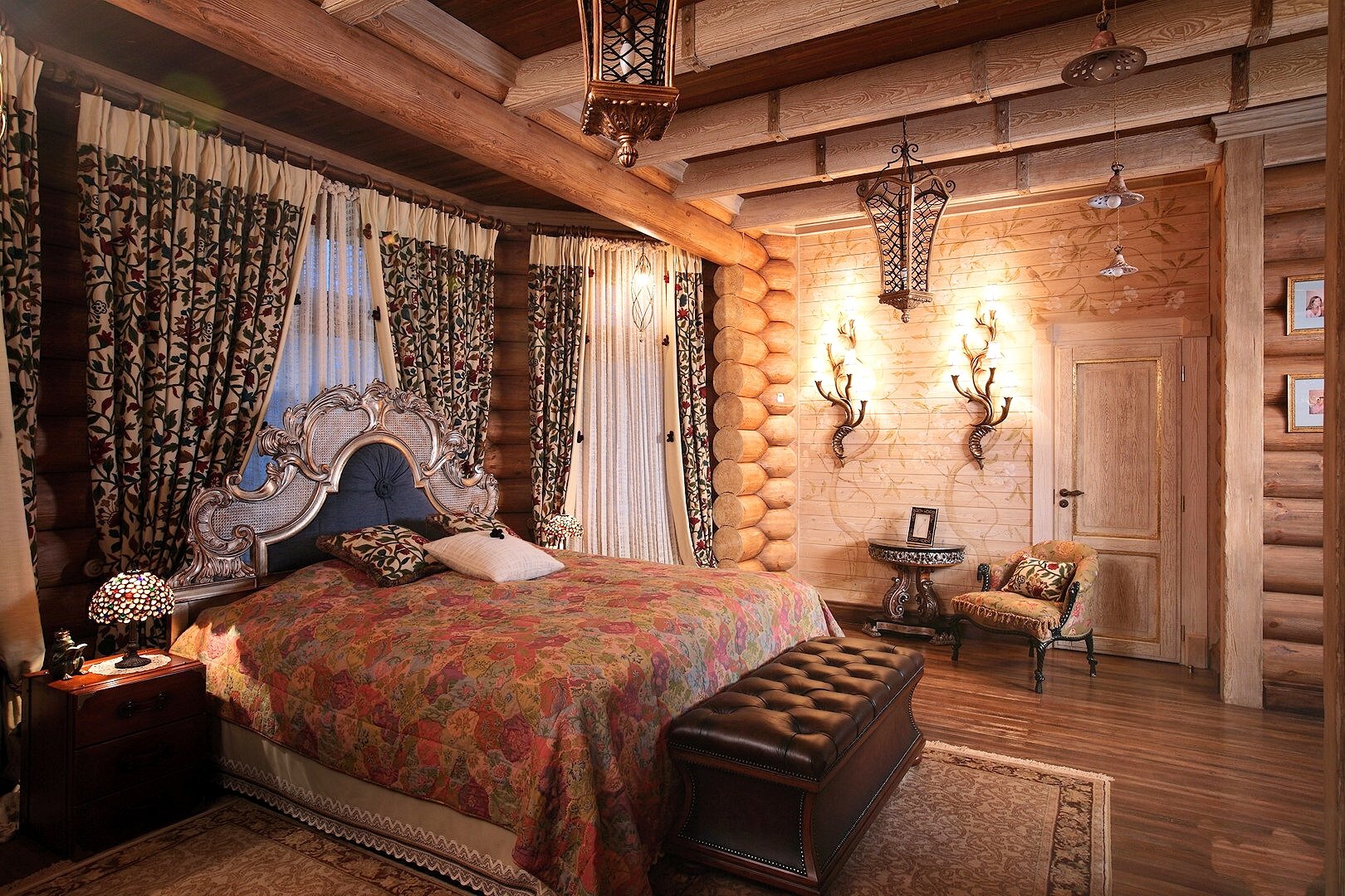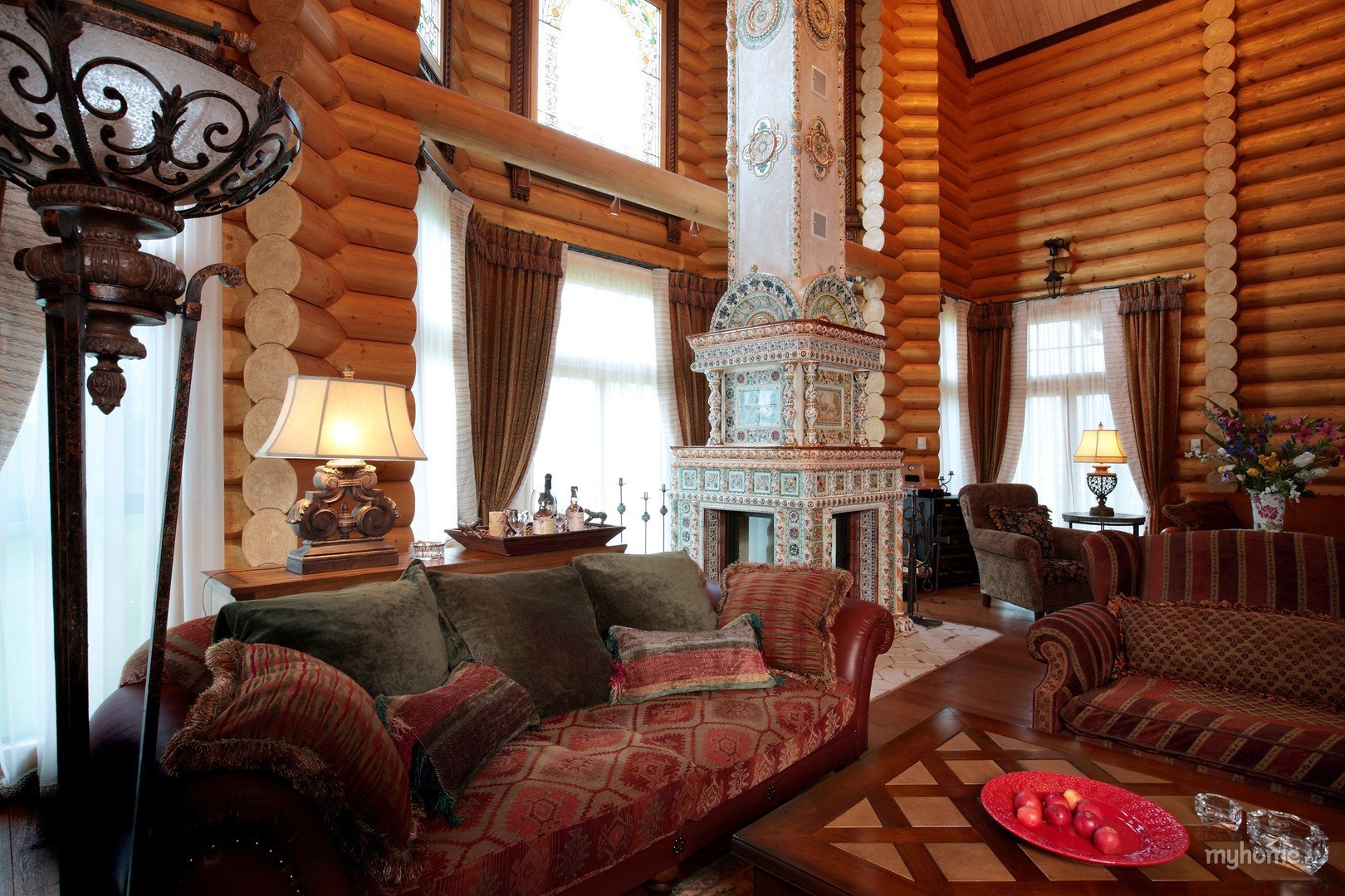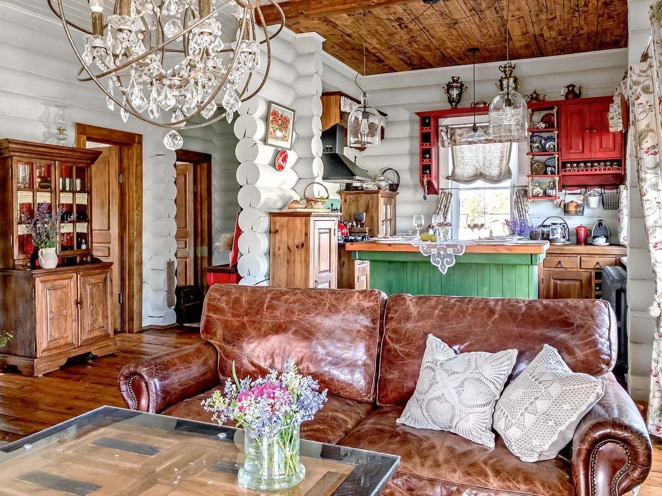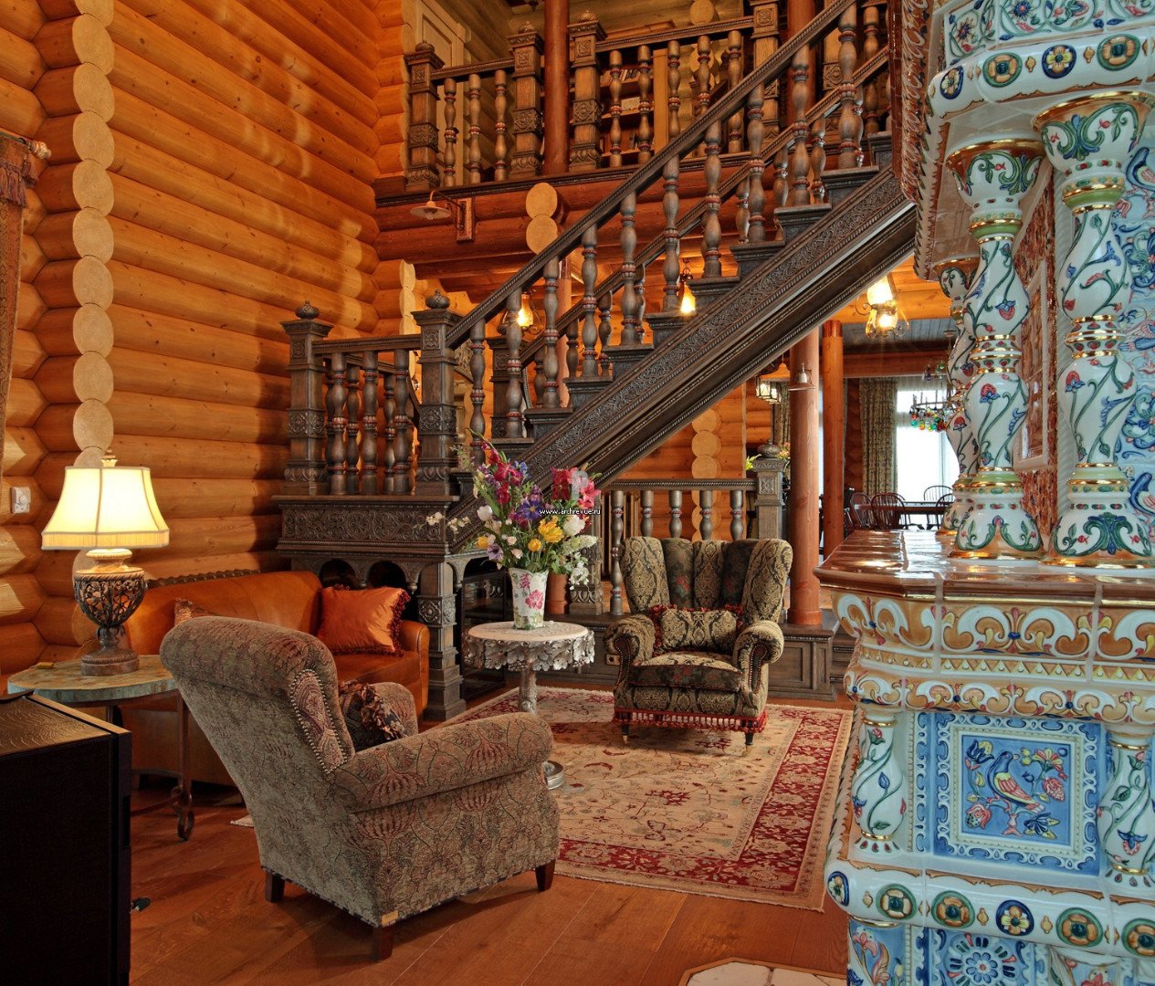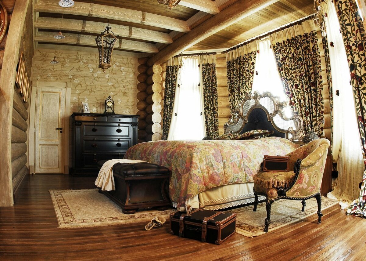 Интерьер в стиле русская усадьба в бревенчатом доме