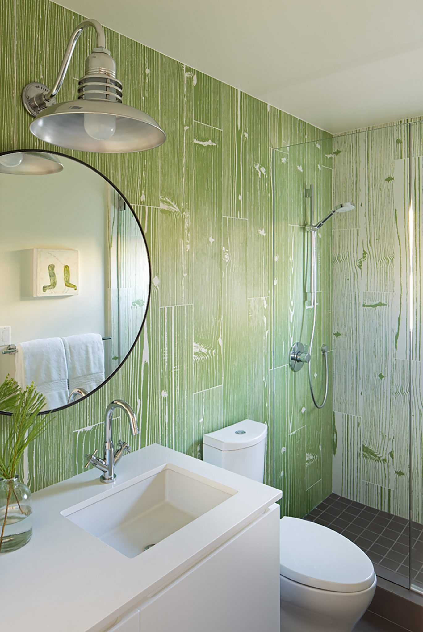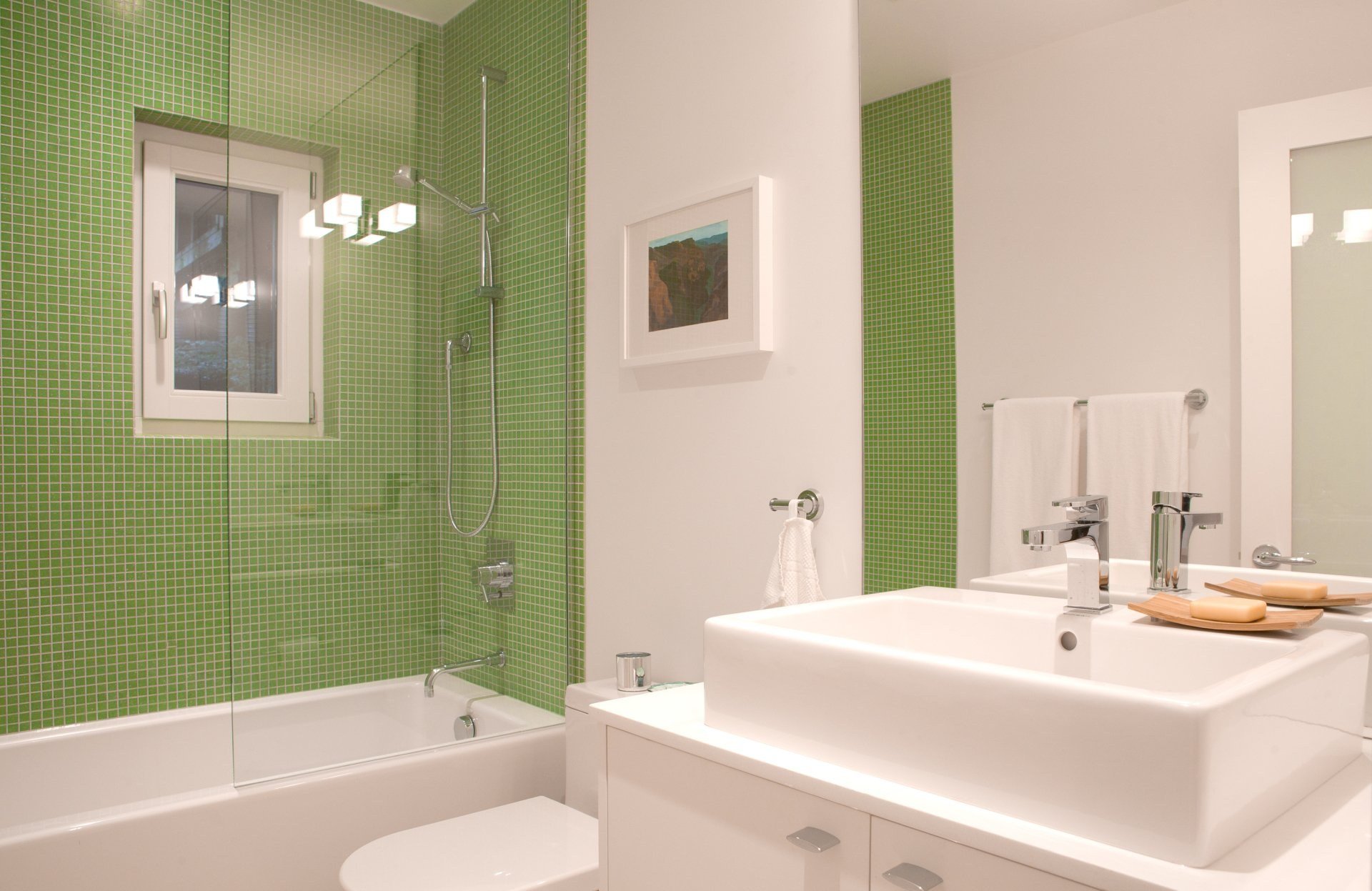 Бело зеленая ванная комната