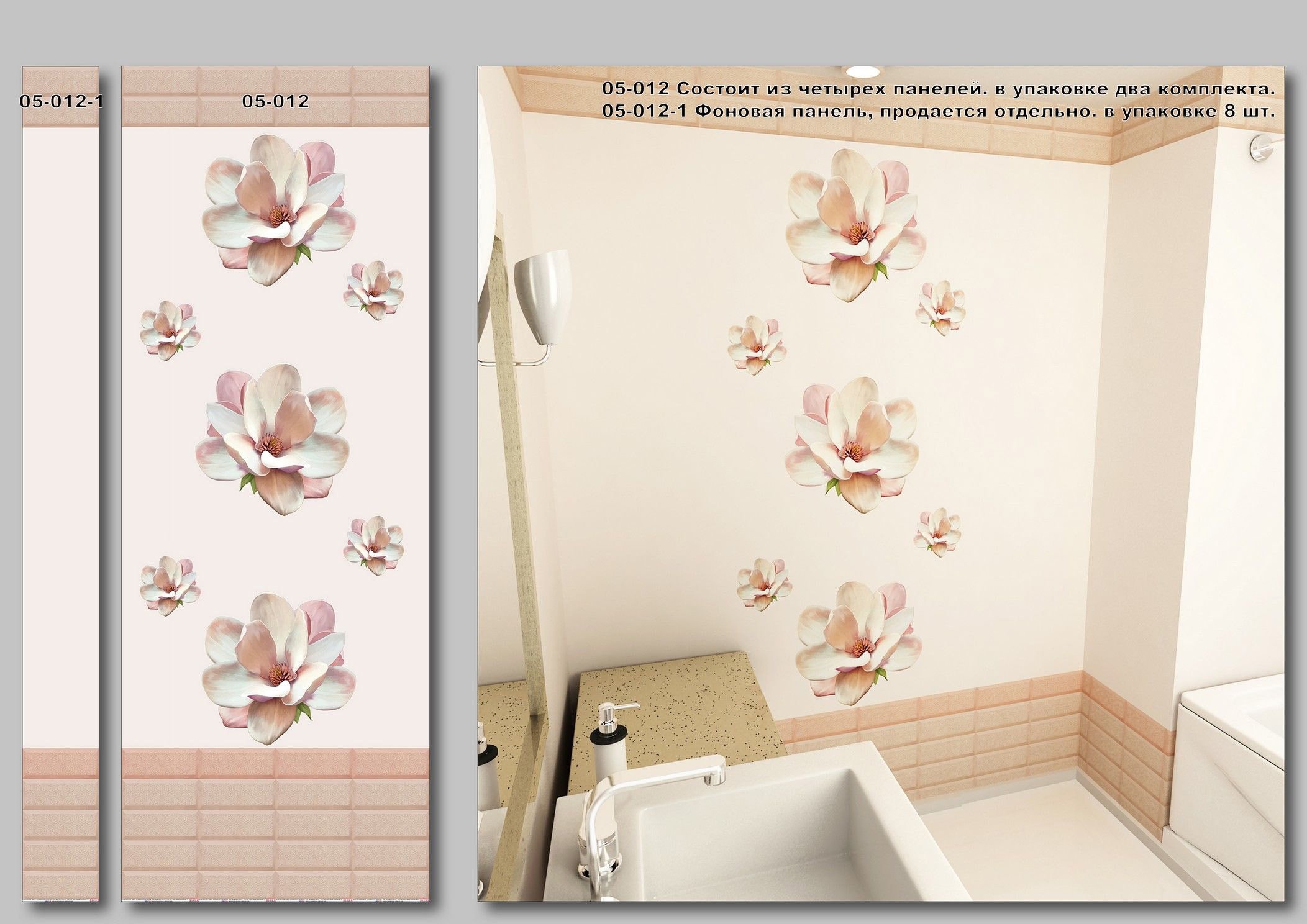 Пластиковые панели для ванной с цветами
