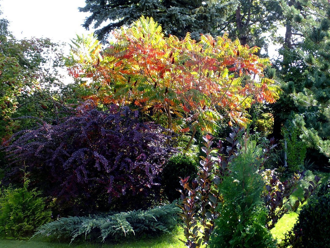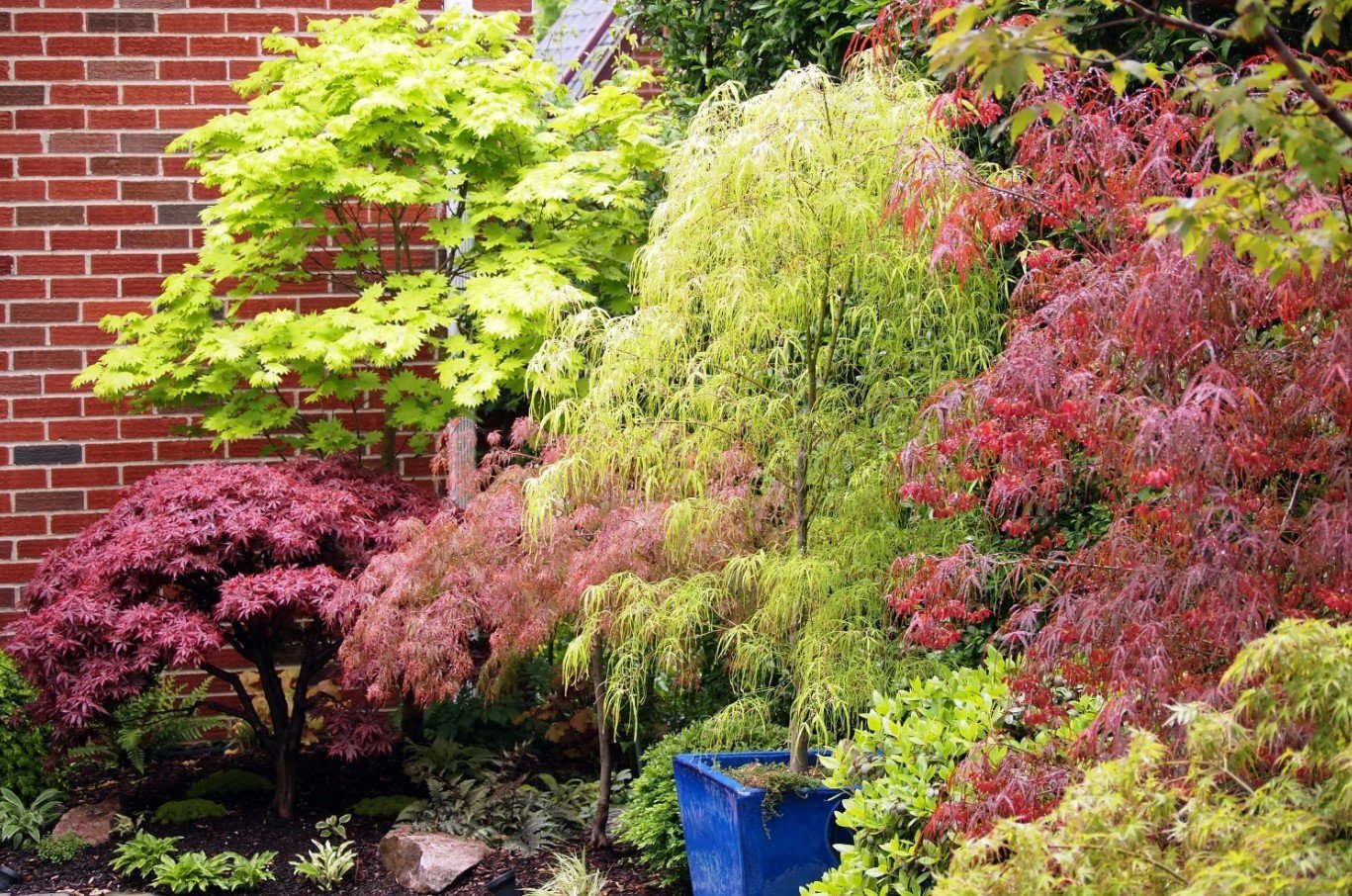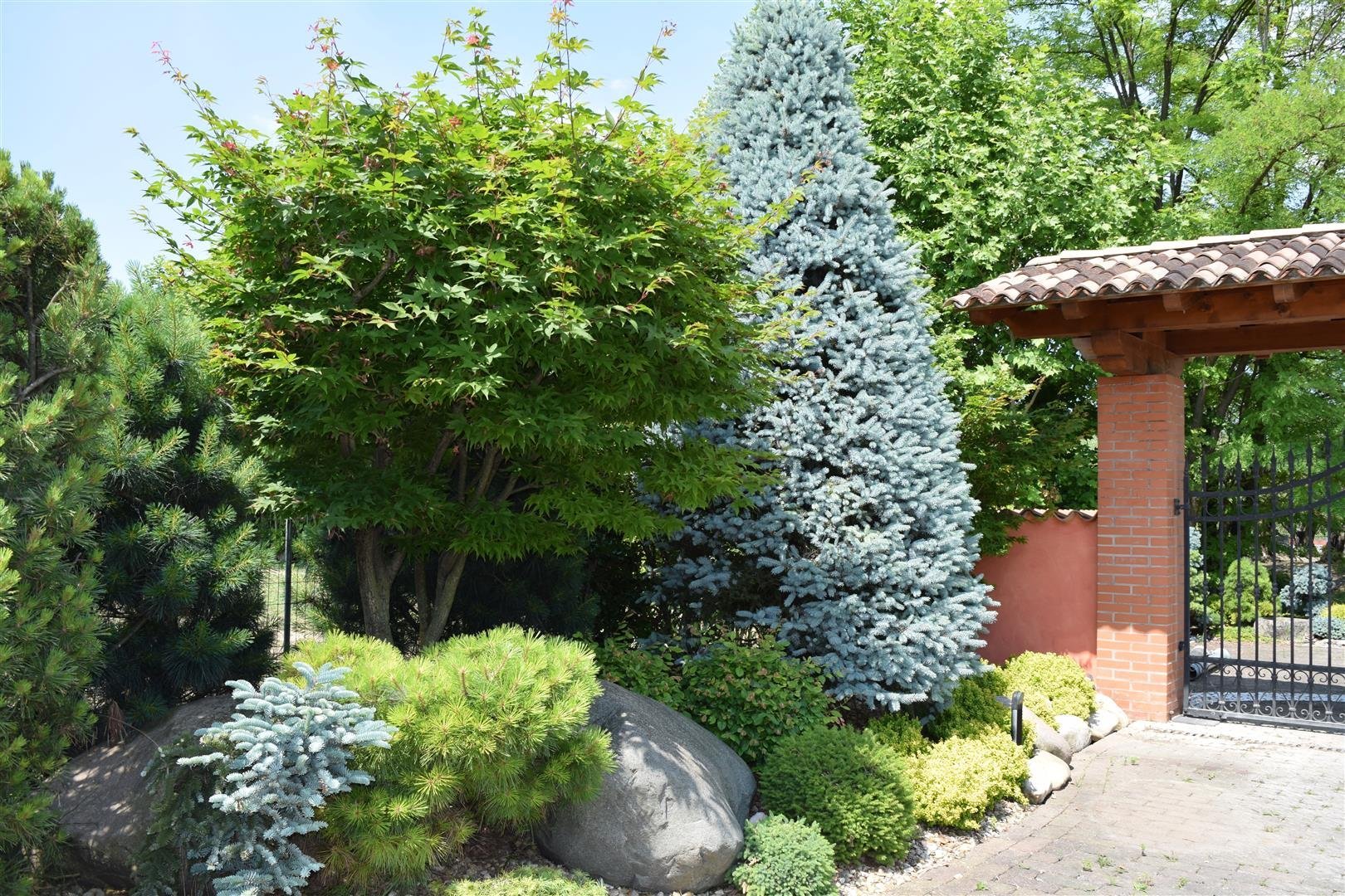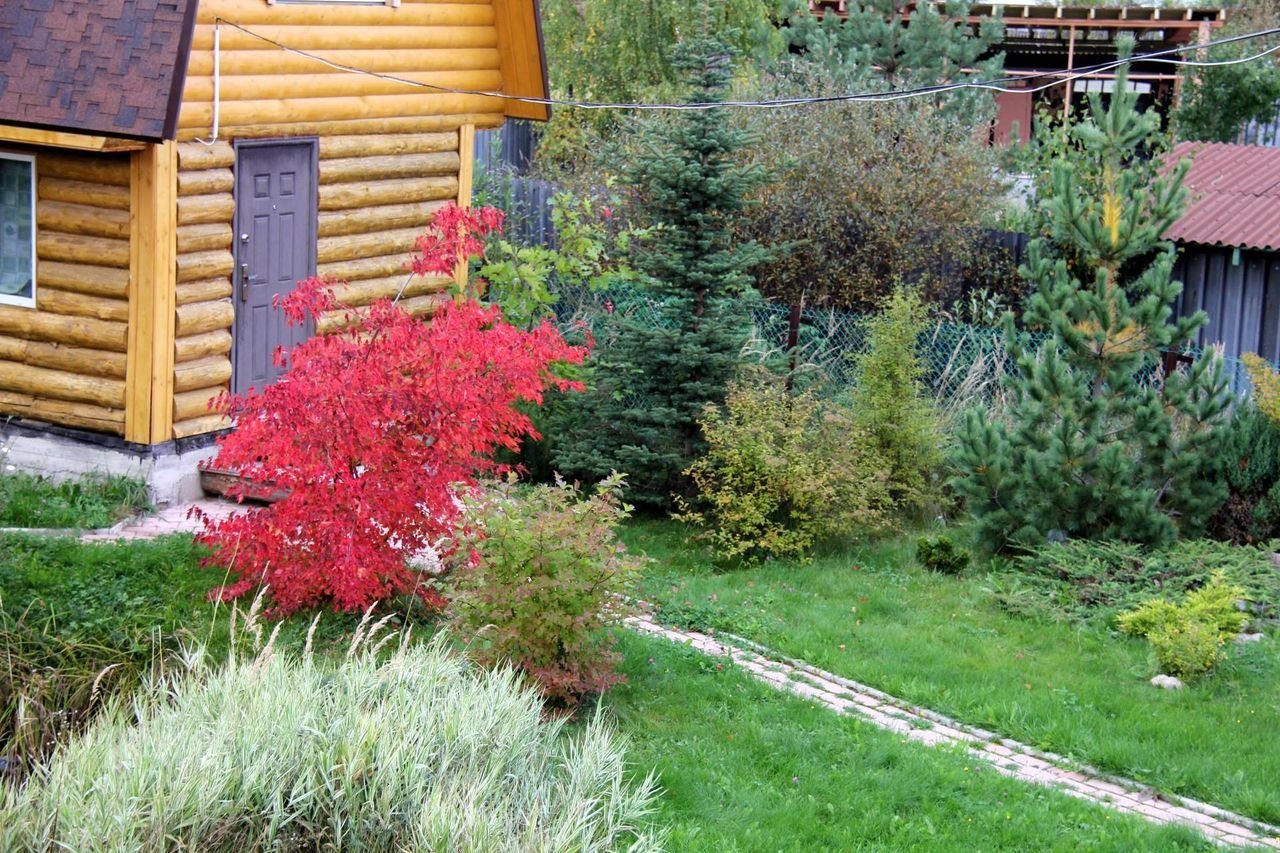 Миксбордер клен Гиннала и хвойные