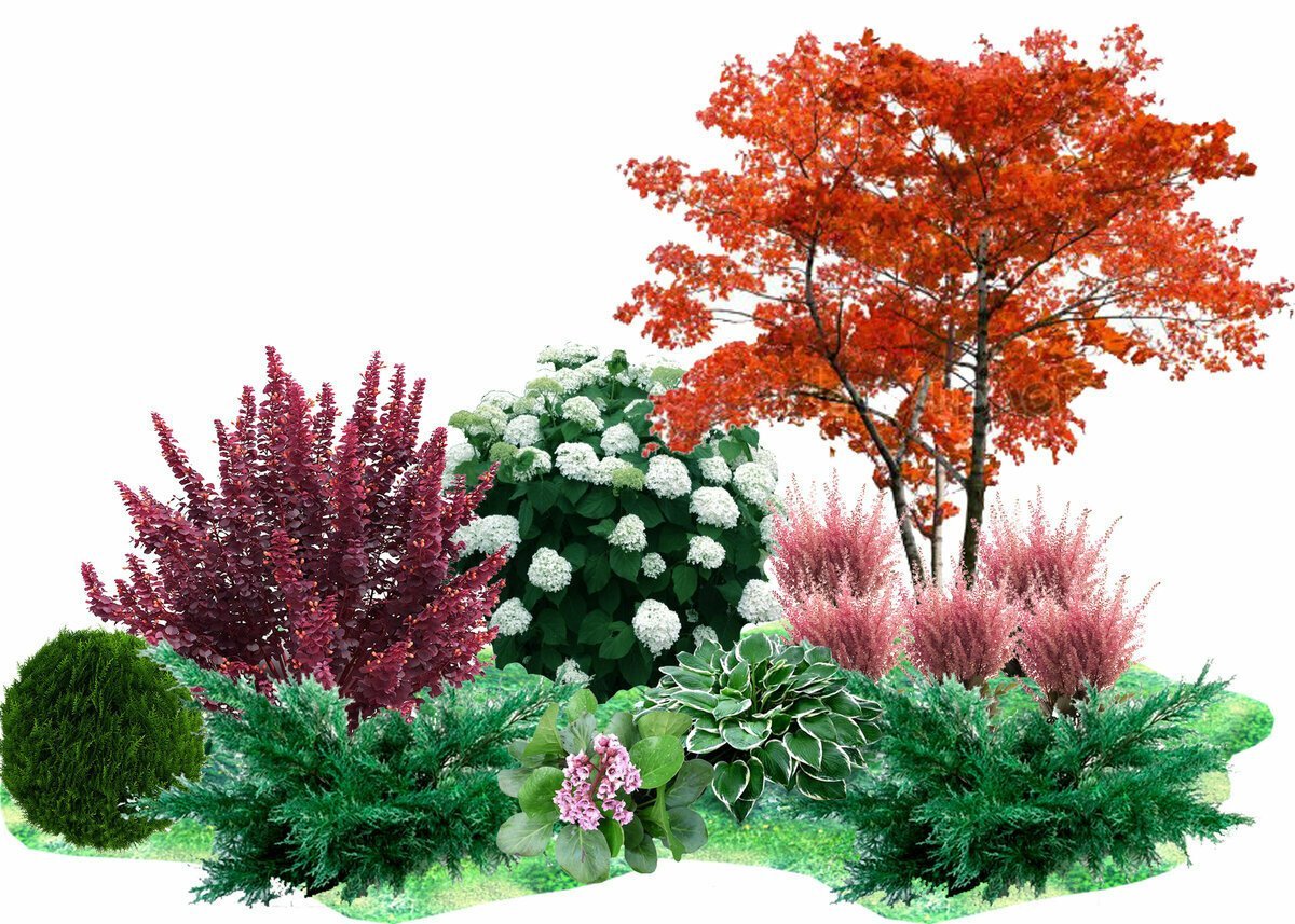 Миксбордер с кленом Гиннала