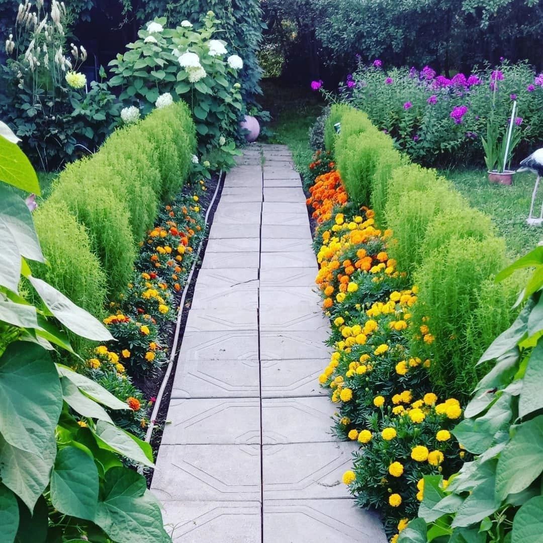 Клумба кохия и бархатцы