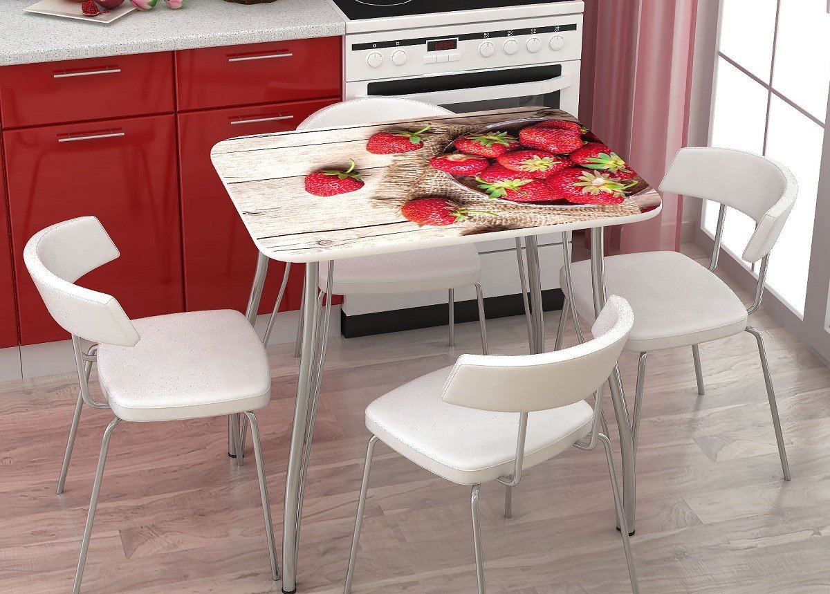 Стол кухонный с фотопечатью клубника Стендмебель